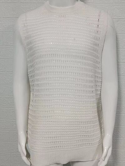 Men's Round Neck Hollow Out Sleeveless Knit Top