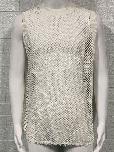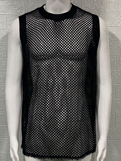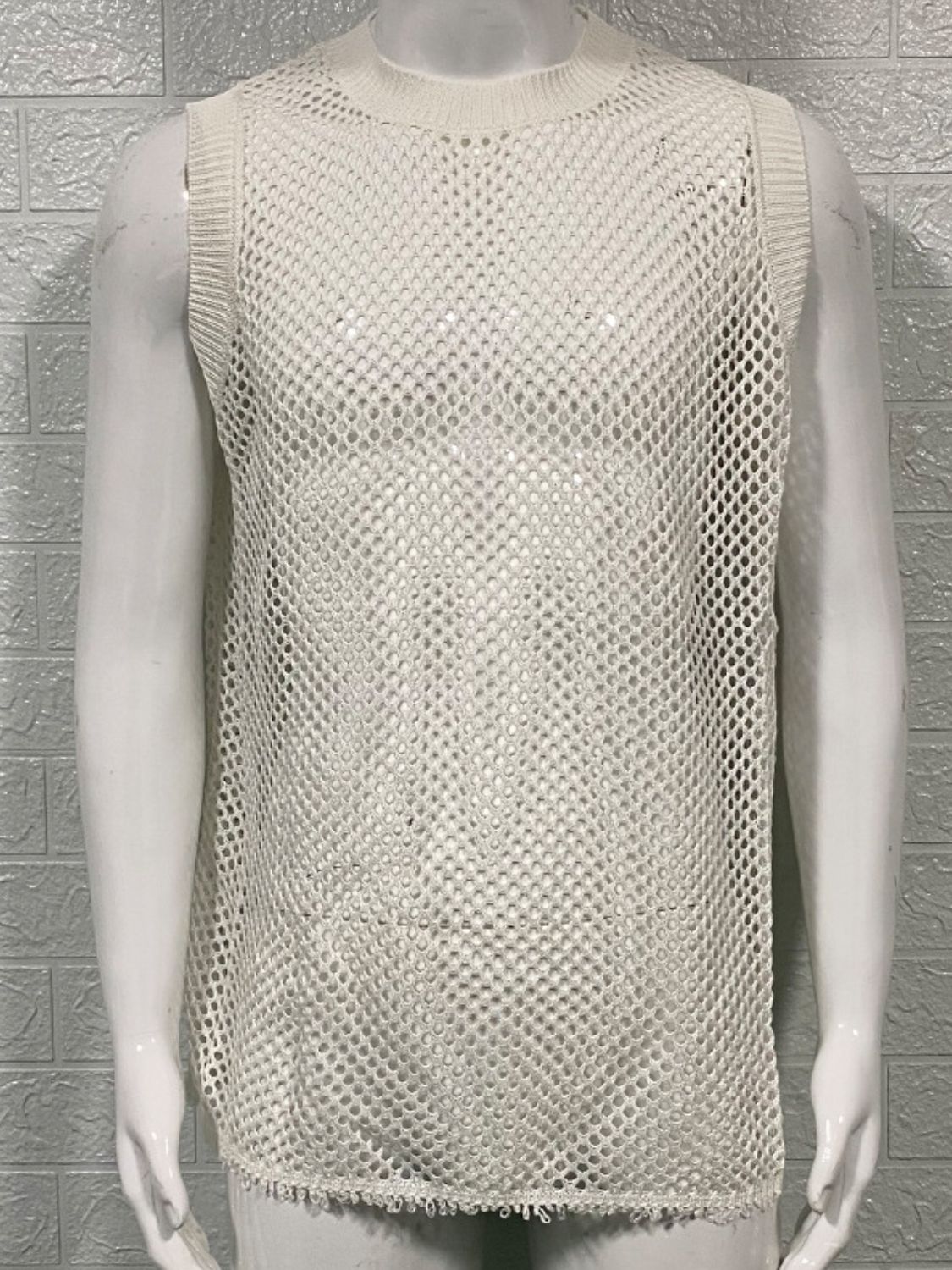 Men's Round Neck Hollow Out Sleeveless Knit Top