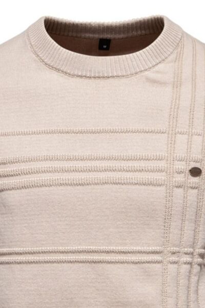 Men's Round Neck Striped Sweater