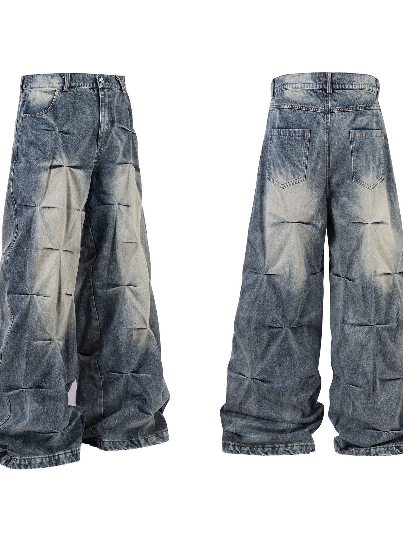 Men's Ruched Wide Leg Jeans