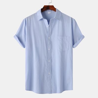 Men's Short Sleeve Button Down Shirt with Chest Pocket