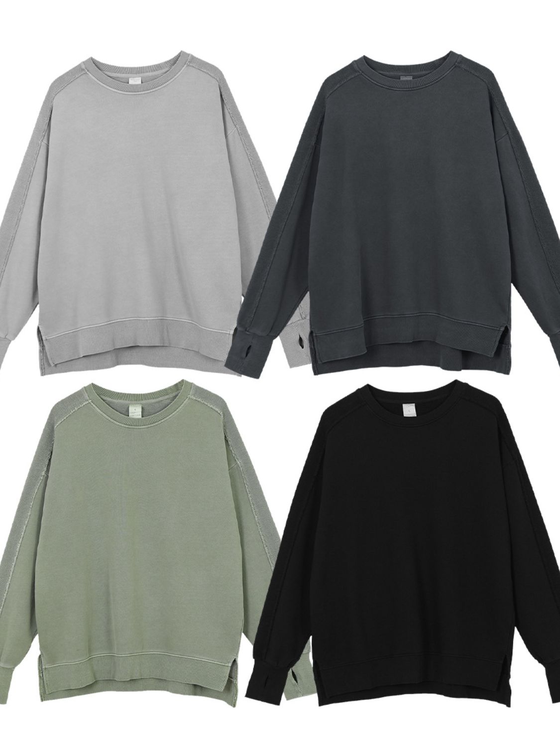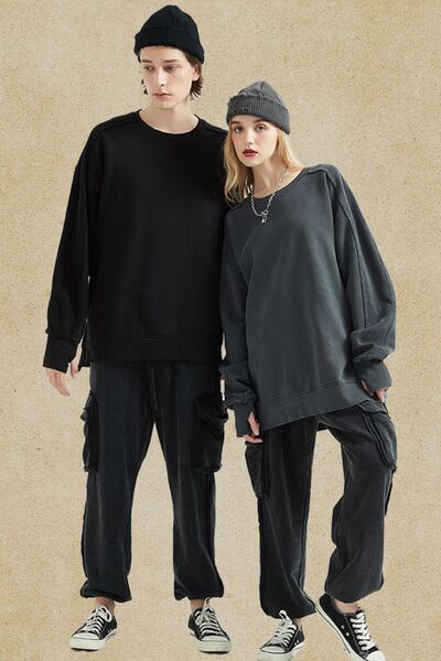 Men's Side Slit Round Neck Long Sleeve Sweatshirt