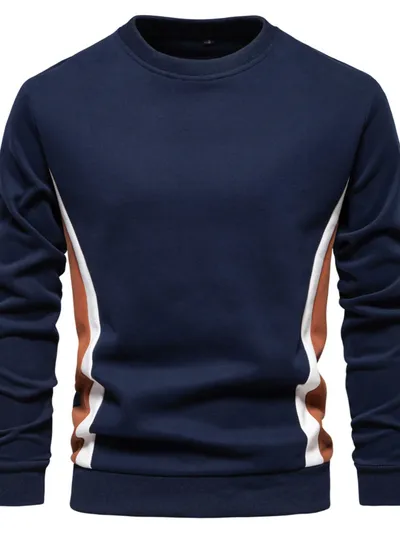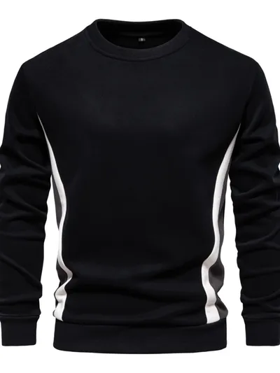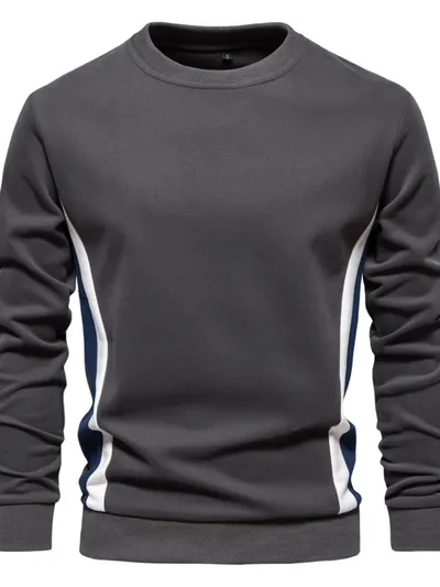 Men's Side Striped Contrast Round Neck Sweatshirt