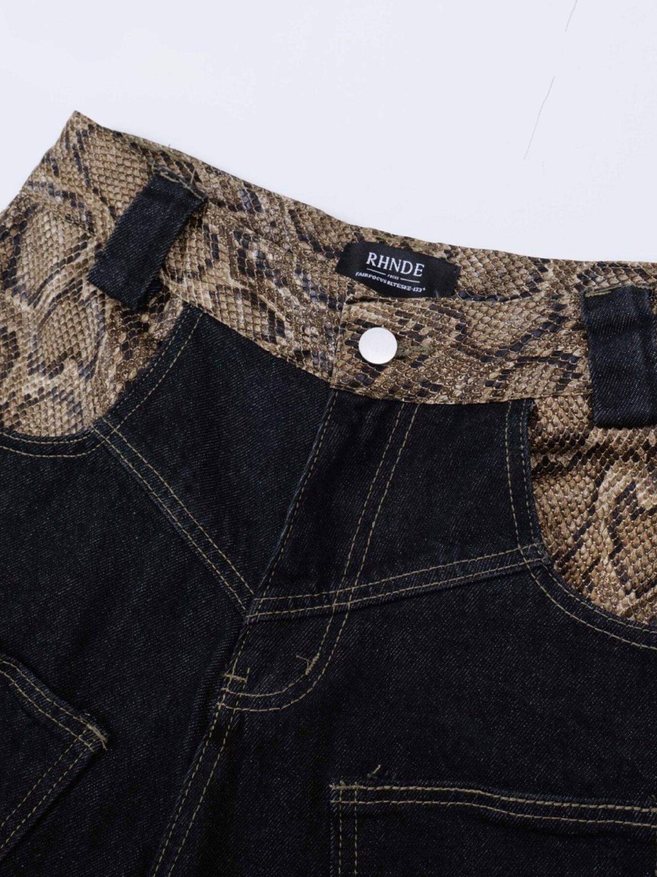 Men's Snake Print Denim Shorts