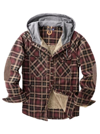Men's Snap Down Hooded Plaid Shacket