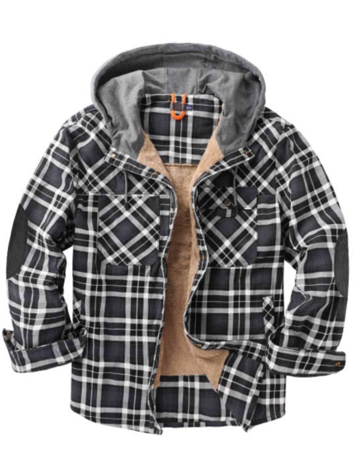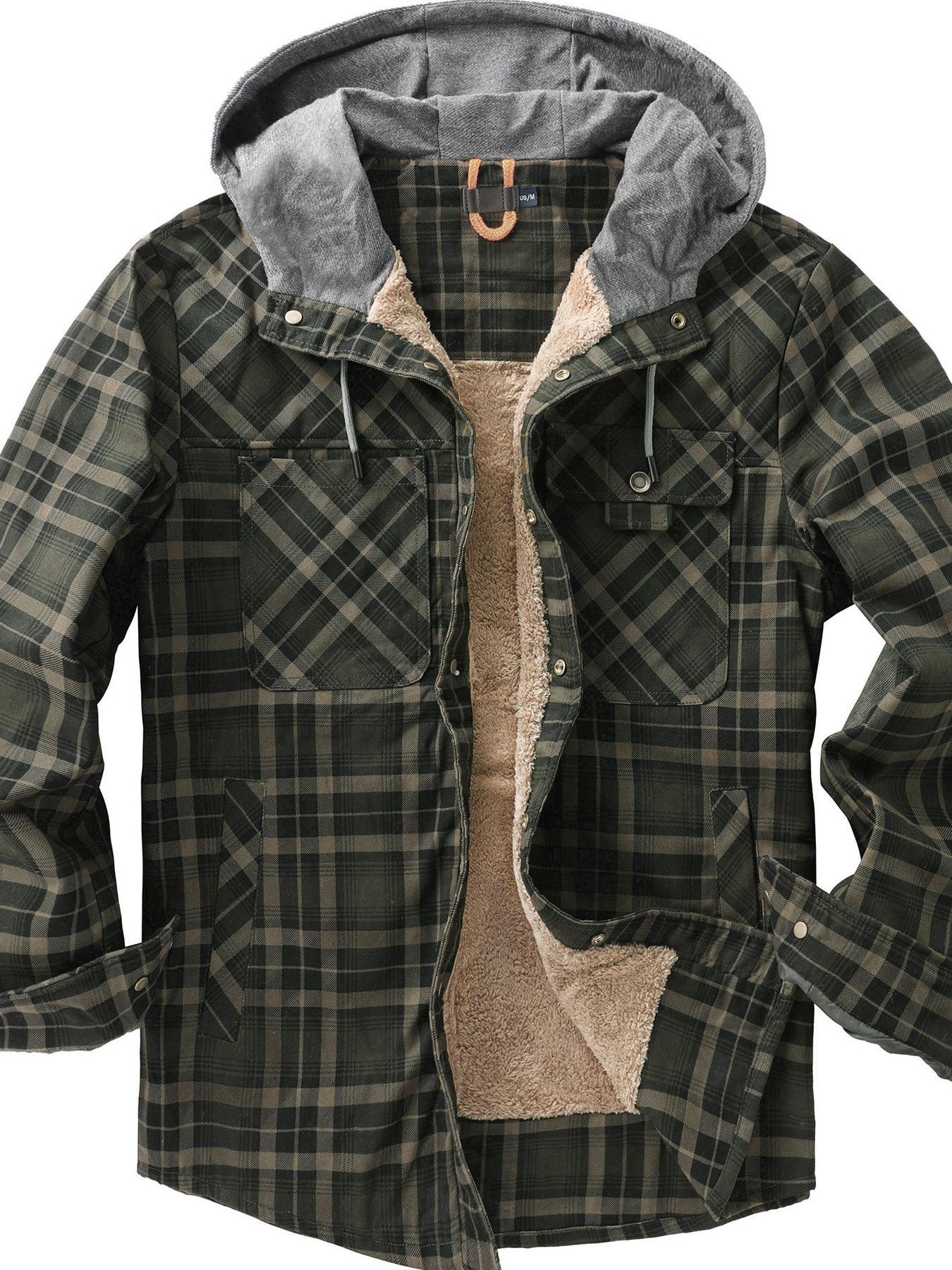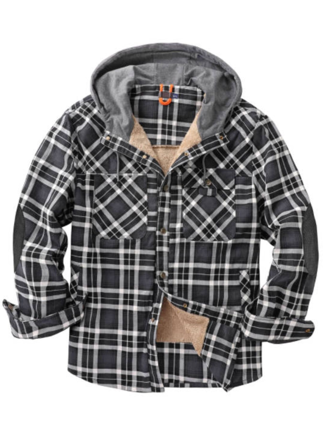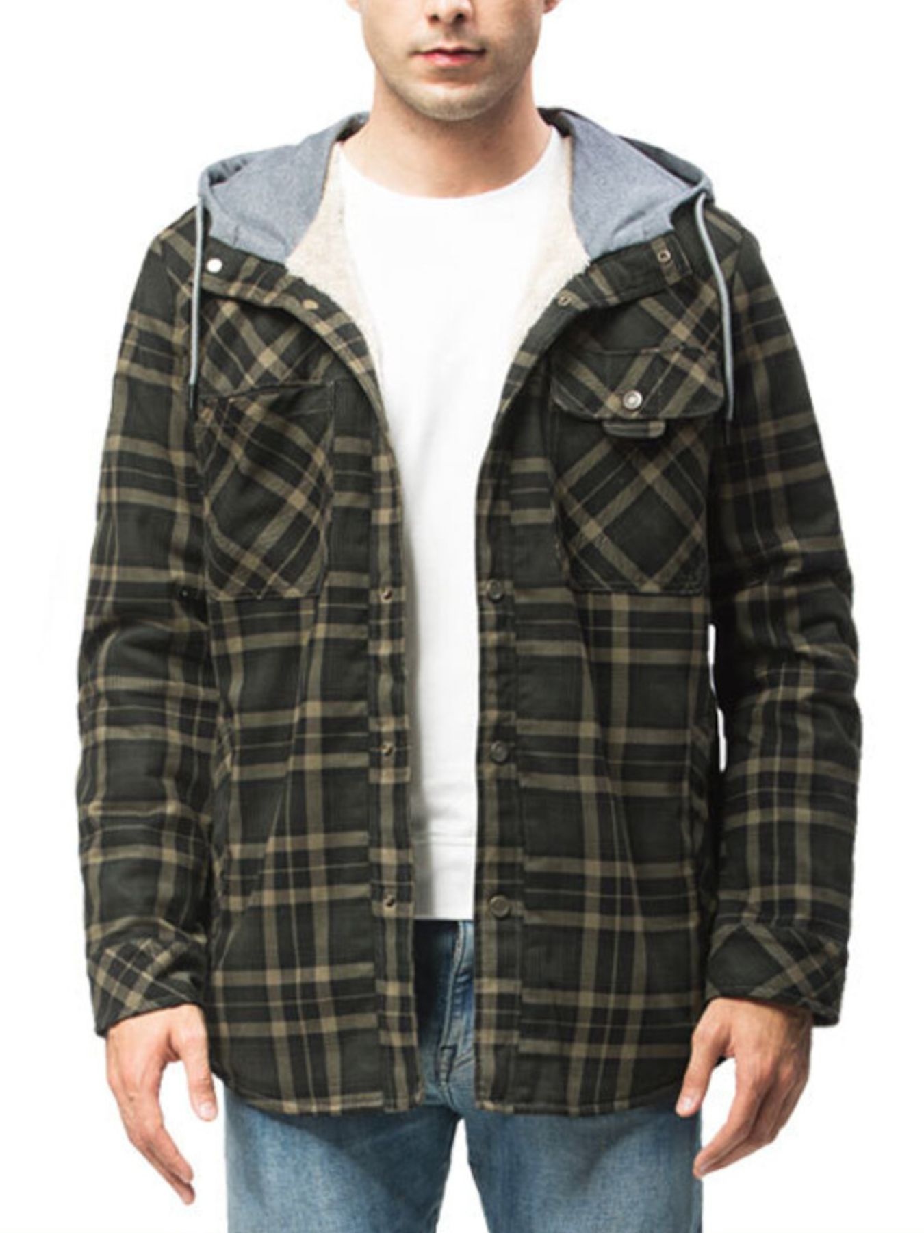 Men's Snap Down Plaid Flannel Hooded Jacket