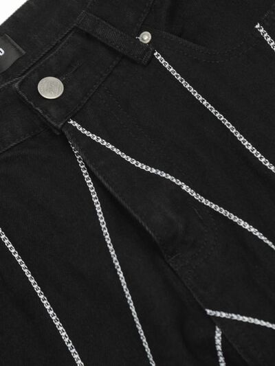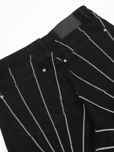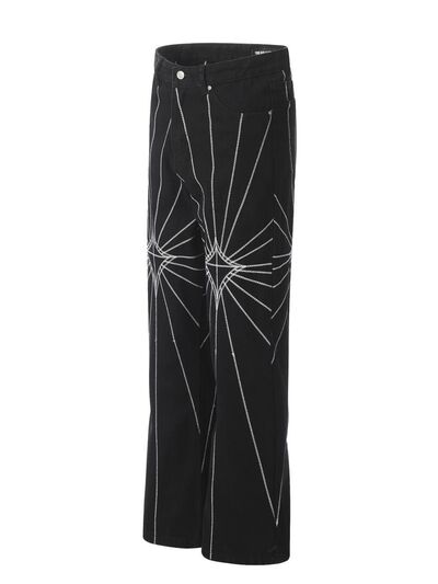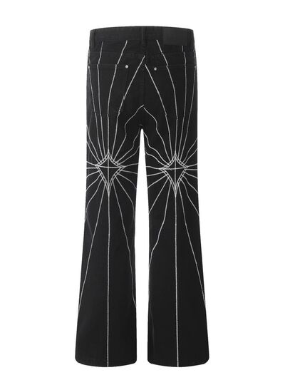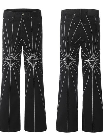 Men's Spider Web Embroidered Flared Jeans