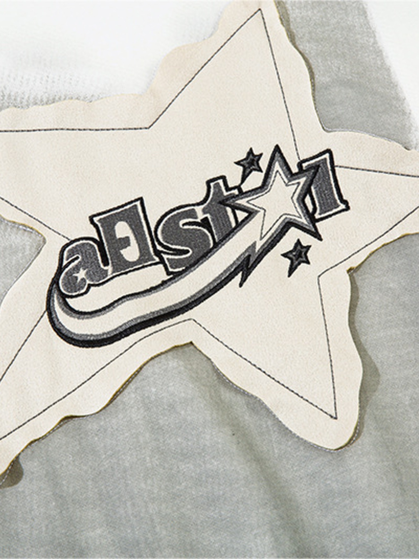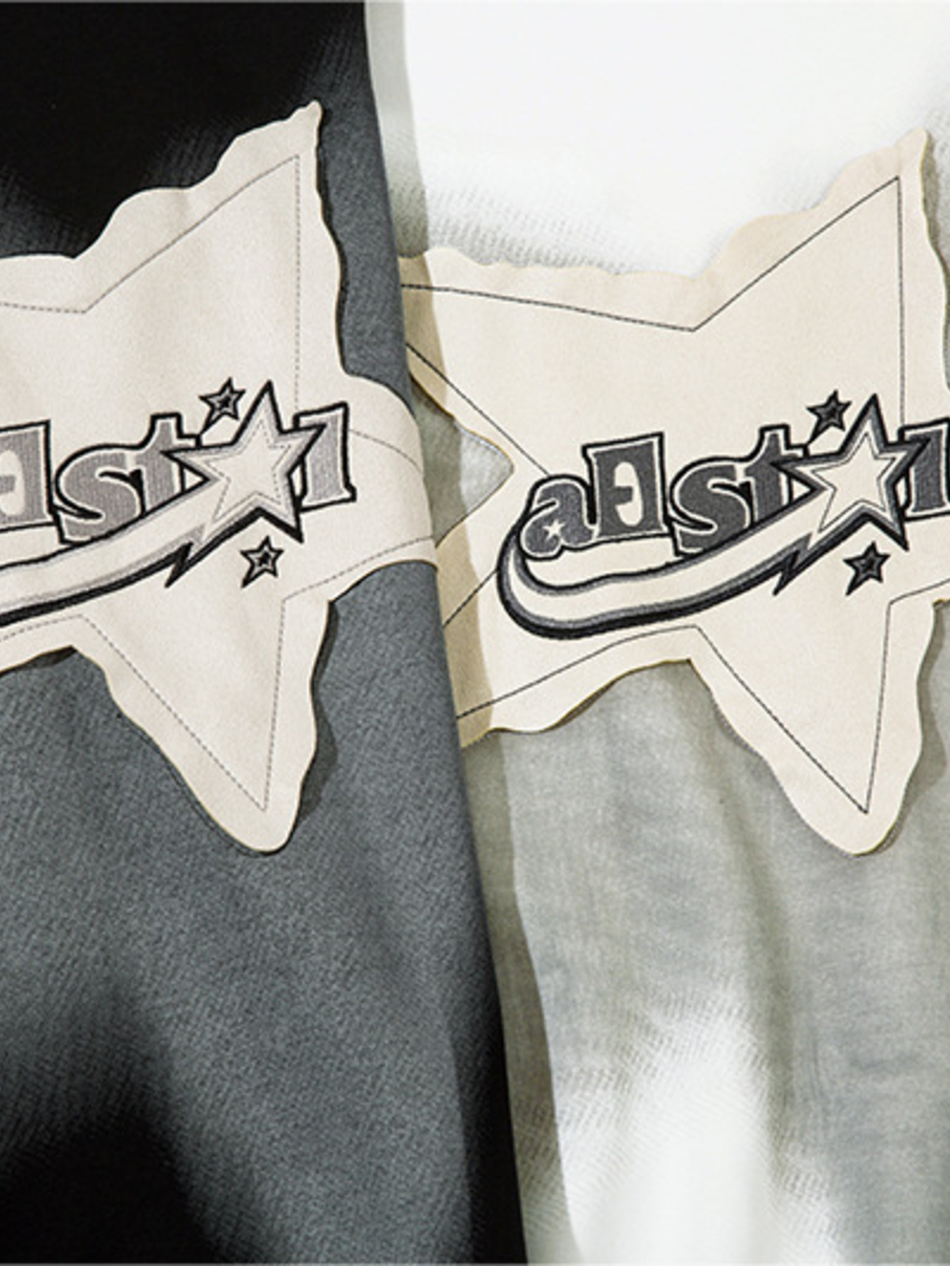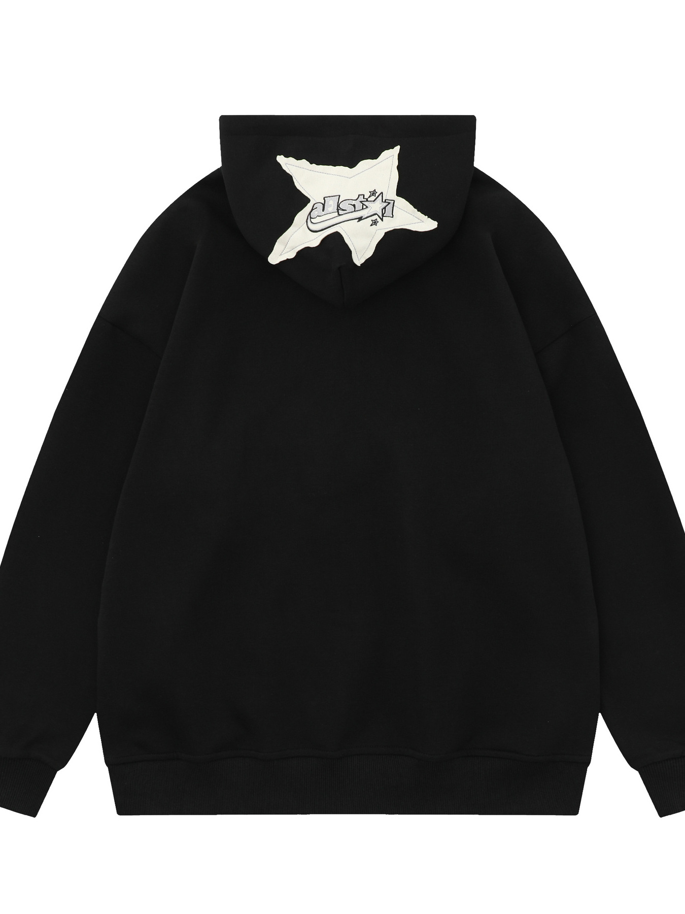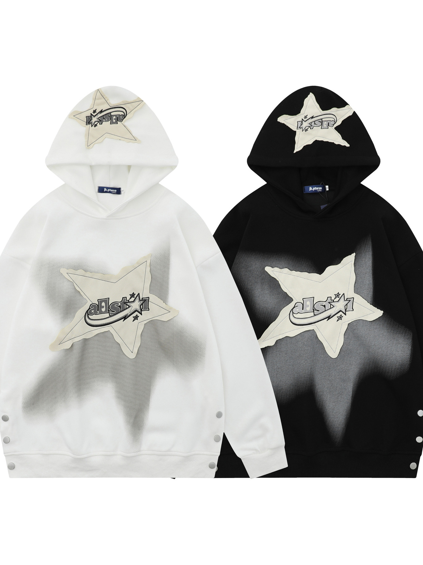 Men's Star Patch Oversized Hoodie with Snap Detail