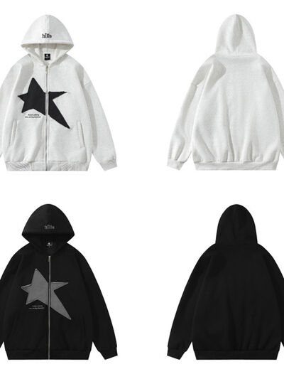 Men's Star Zip-Up Long Sleeve Hoodie