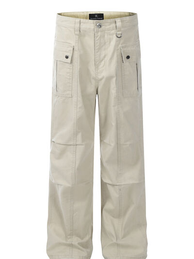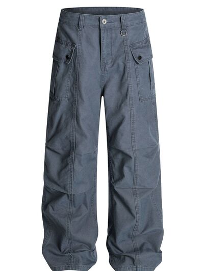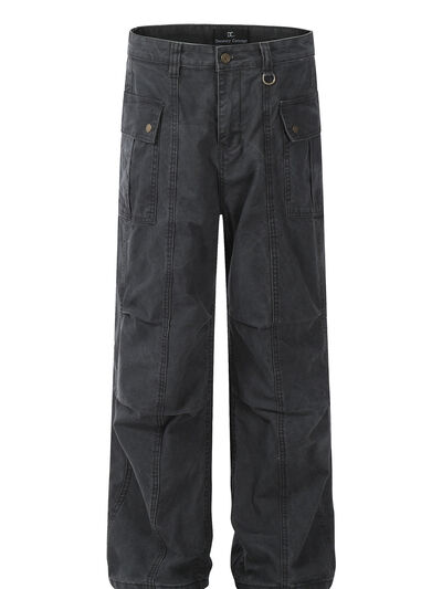 Men's Straight Cargo Jeans with Ruched Detail