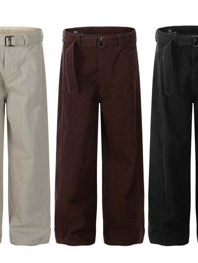 Men's Straight Cargo Pants with Belted
