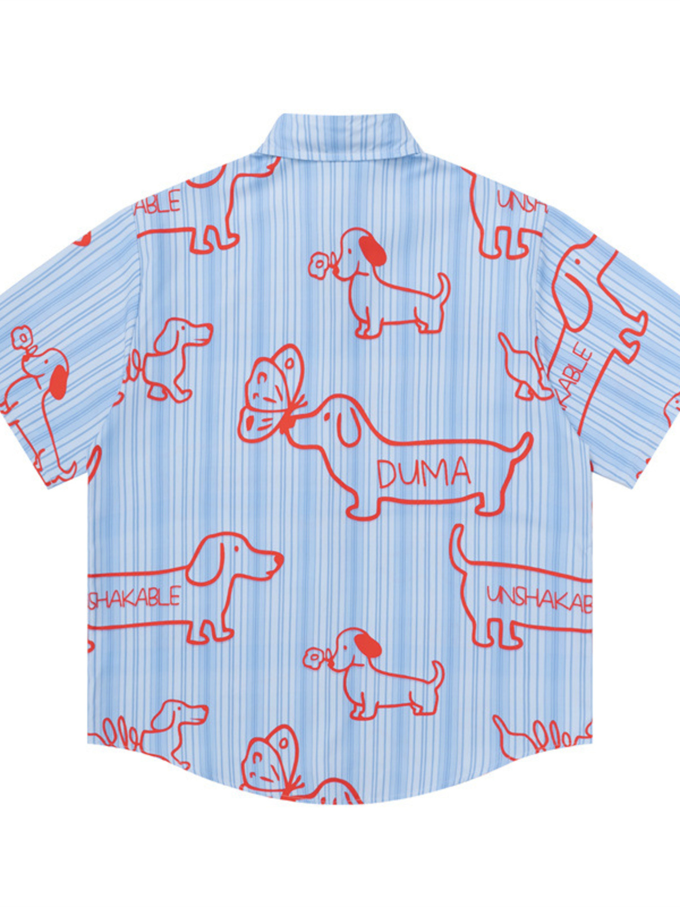 Men's Striped Dog Print Short Sleeve Button-Up Shirt