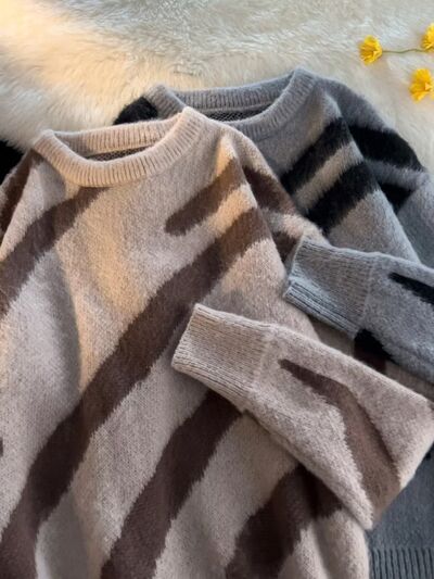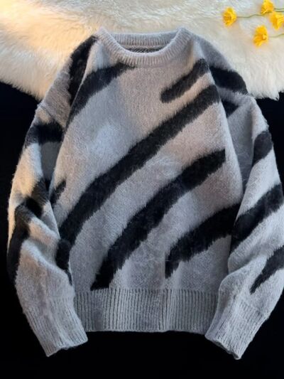 Men's Striped Fuzzy Knit Pullover Sweater