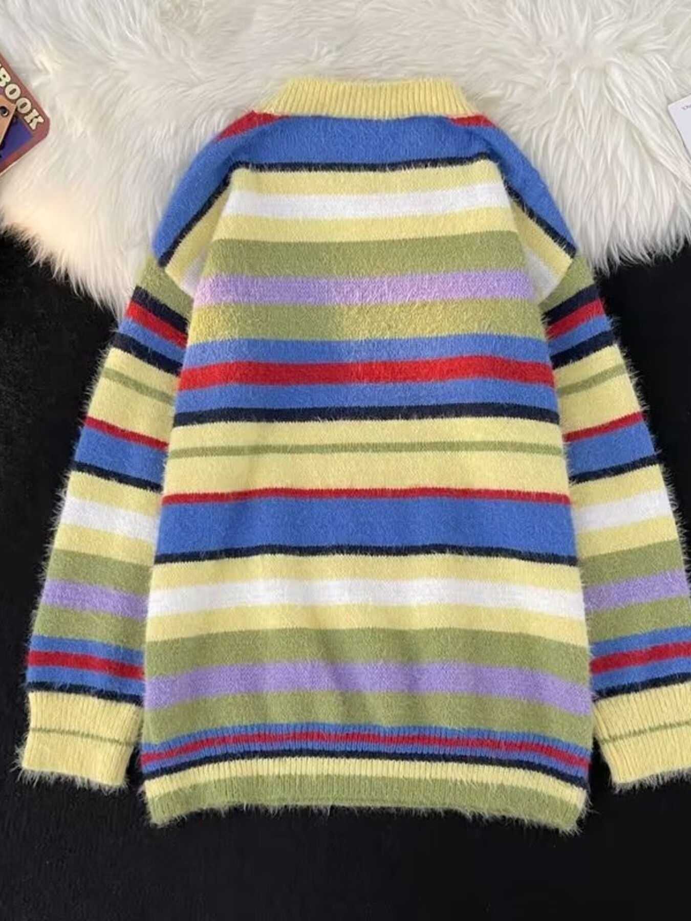 Men's Striped Fuzzy Knit Round Neck Sweater