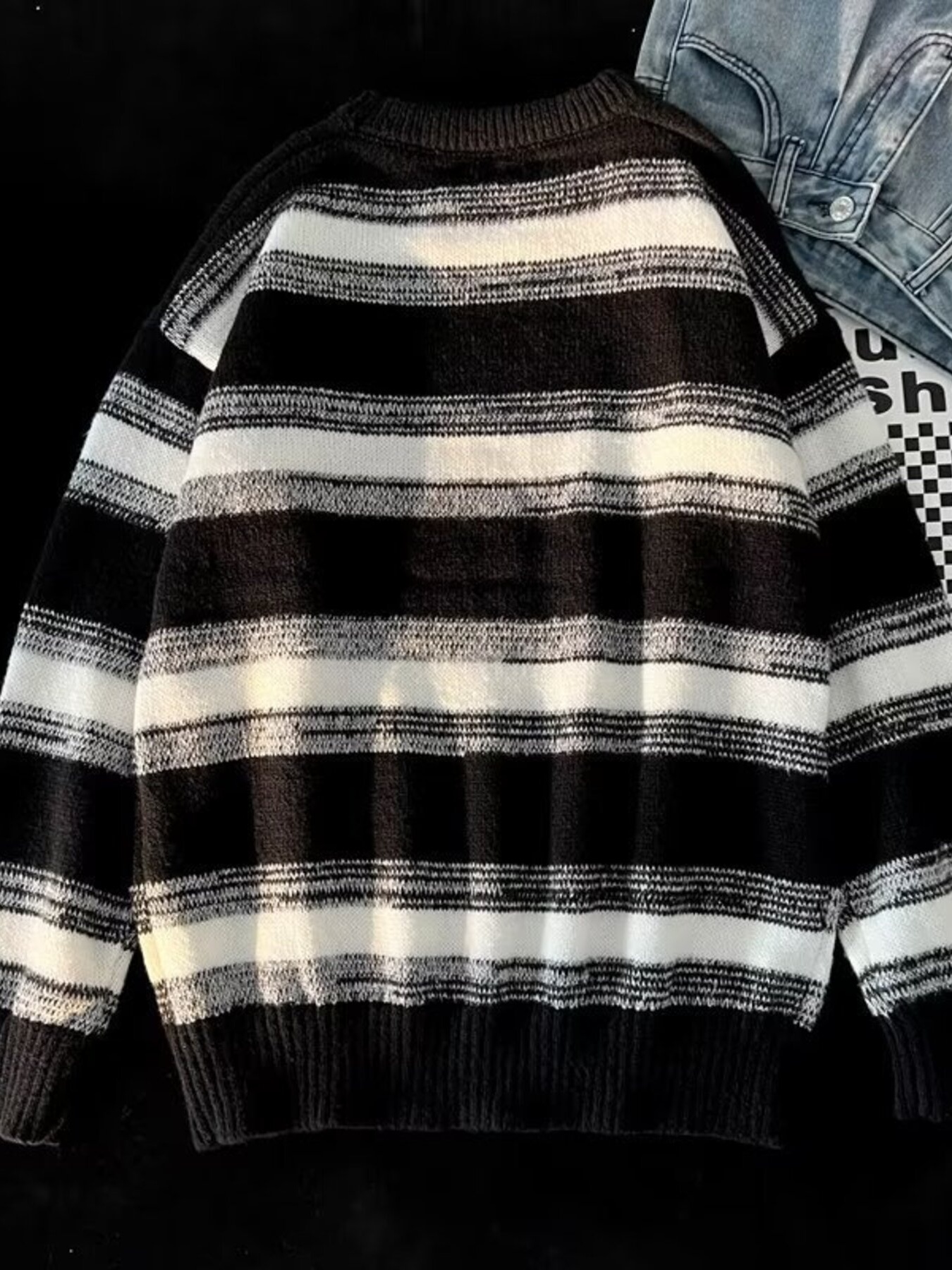 Men's Striped Knit Round Neck Sweater