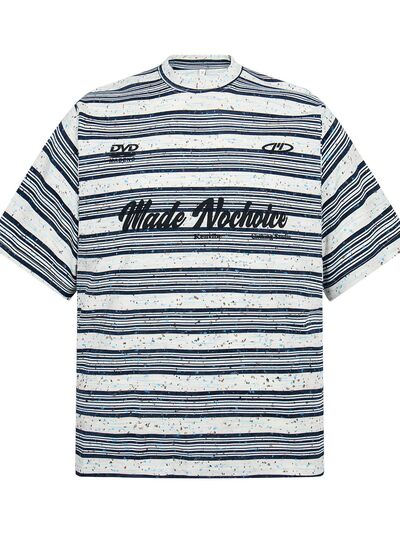 Men's Striped Letter Graphic Round Neck T-Shirt