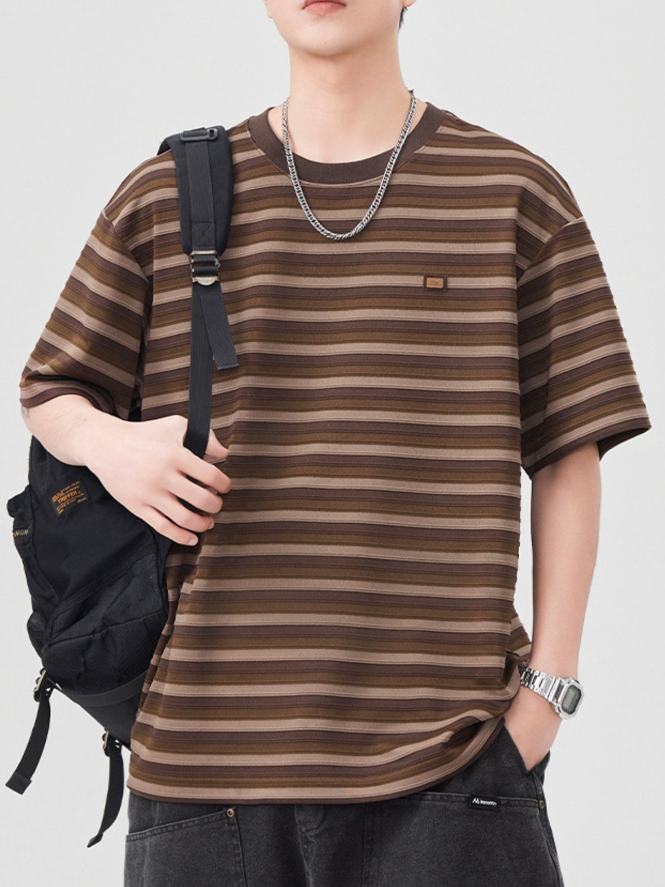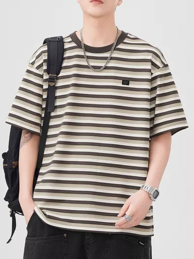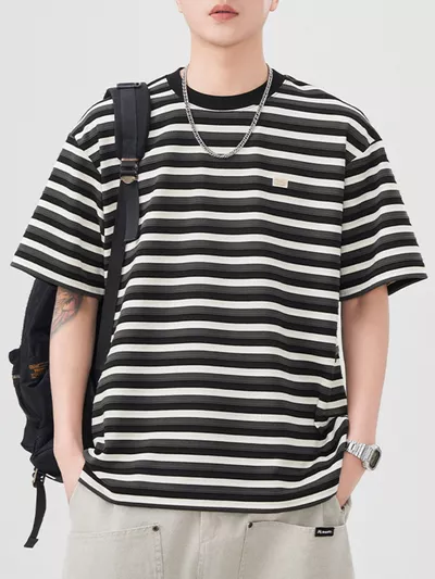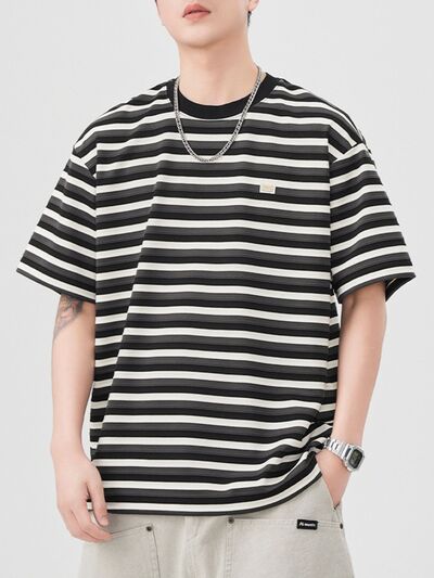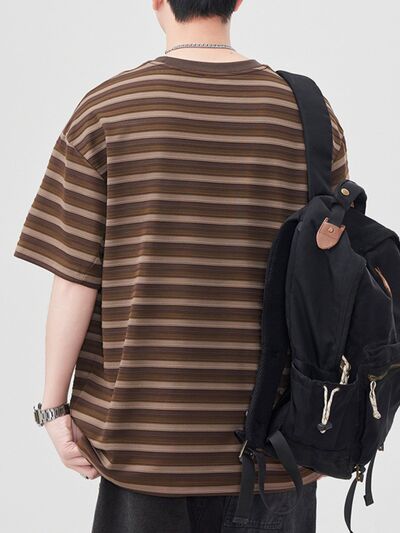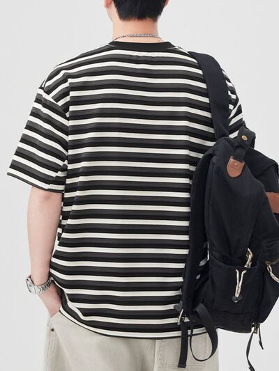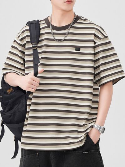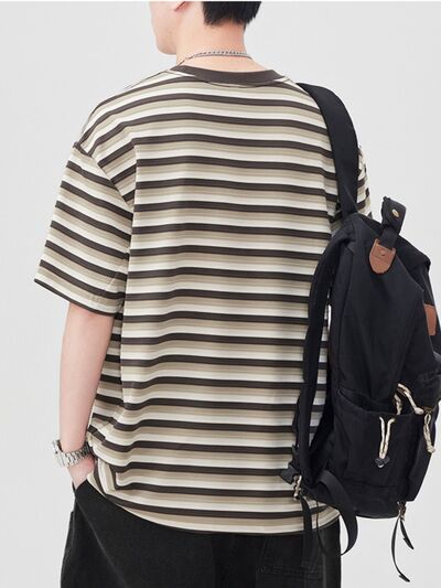 Men's Striped Round Neck Short Sleeve T-Shirt