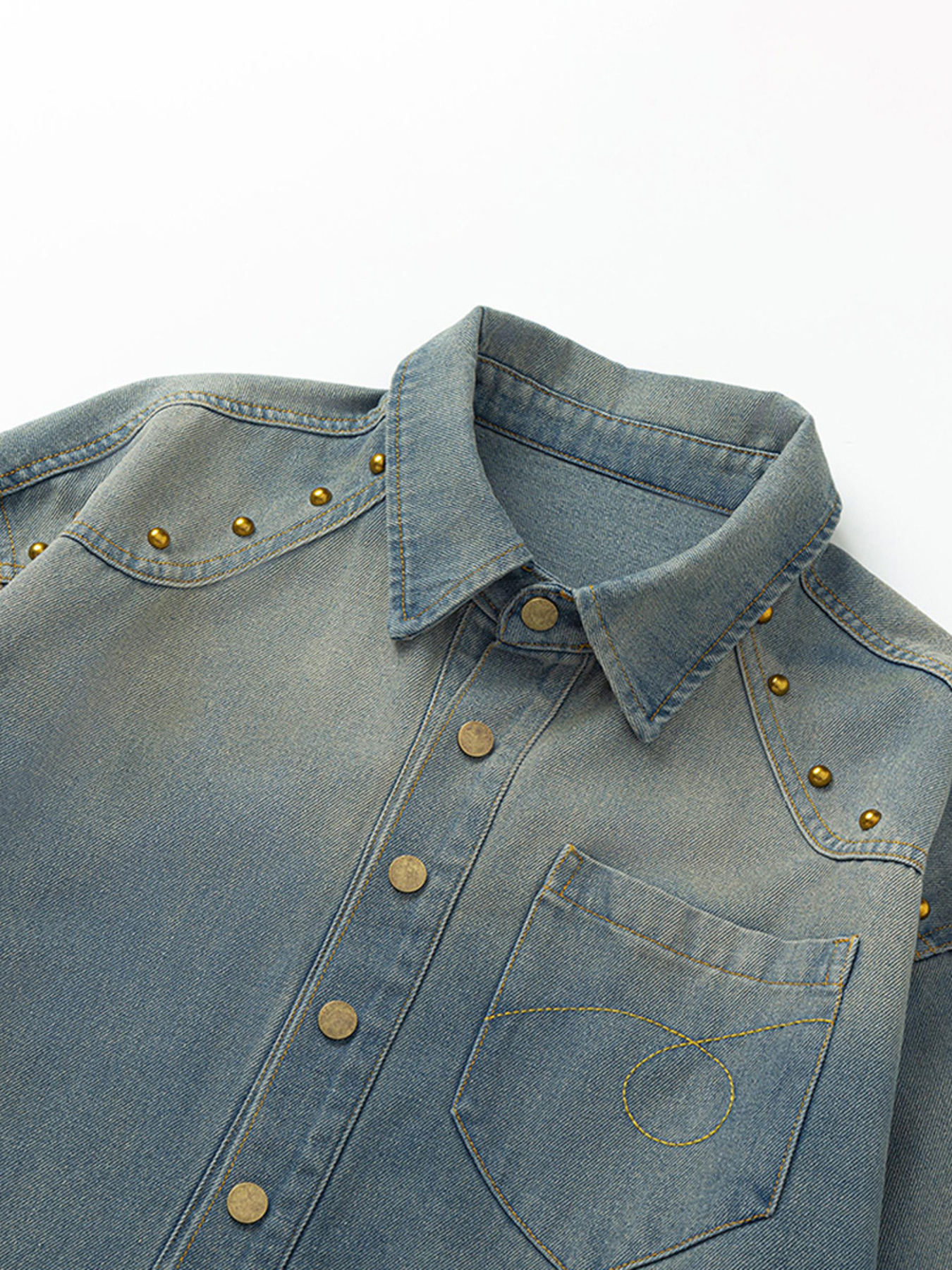 Men's Studded Long Sleeve Denim Shirt