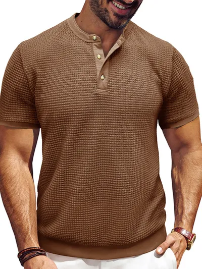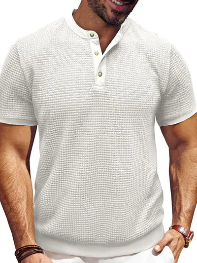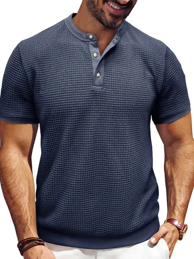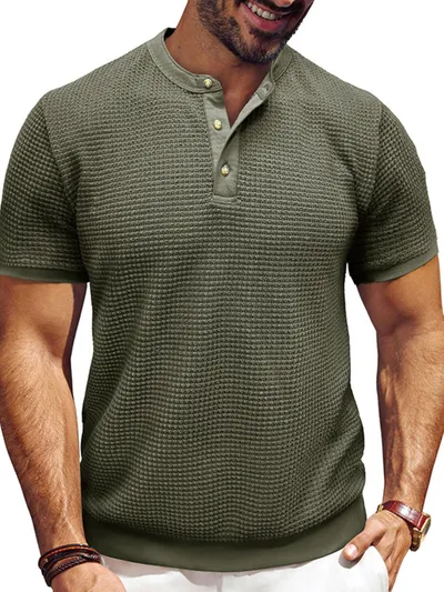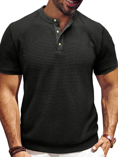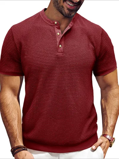 Men's Textured Henley Short Sleeve T-Shirt