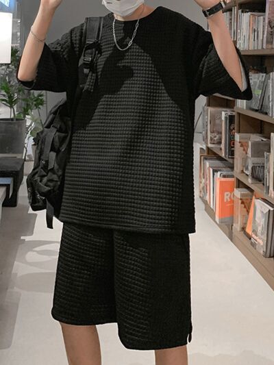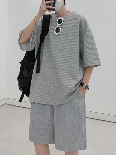 Men's Textured Short Sleeve T-Shirt and Shorts Set