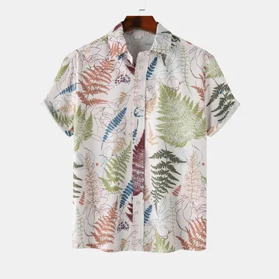 Men's Tropical Fern Print Short Sleeve Button-Up Shirt