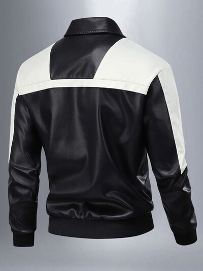 Men's Two-Tone Leather Bomber Jacket with Zip Front