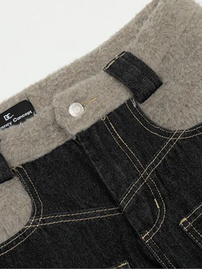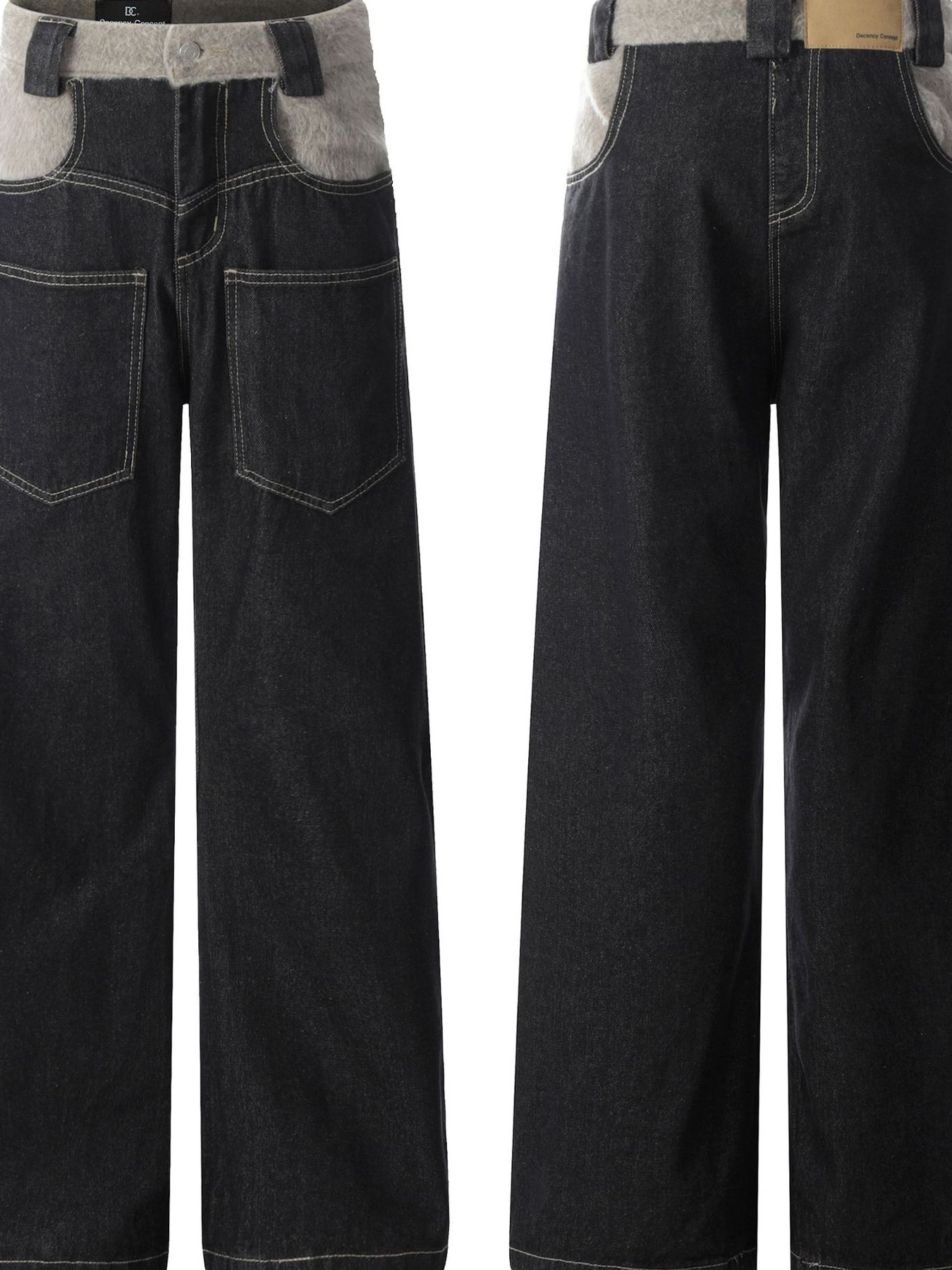 Men's Two-Tone Wide Leg Jeans with Contrast Stitching