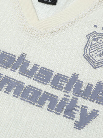 Men's V-Neck Graphic Mesh T-Shirt