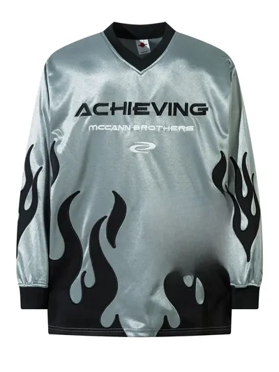 Men's V-Neck T-Shirt with Flame Graphics