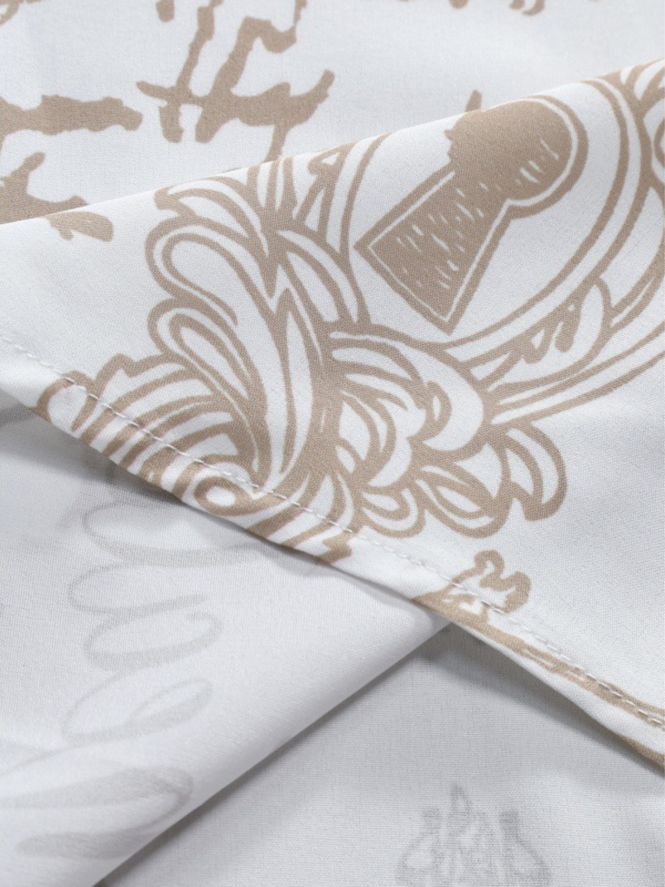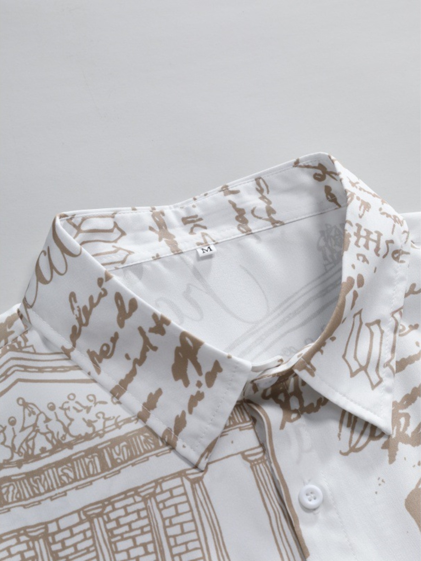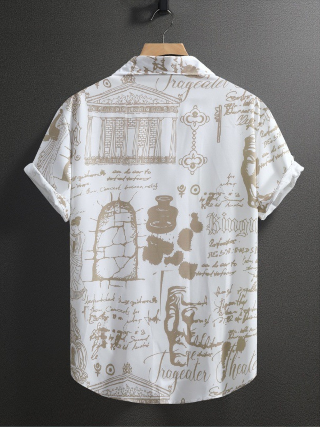 Men's Vintage Art Print Short Sleeve Button-Up Shirt