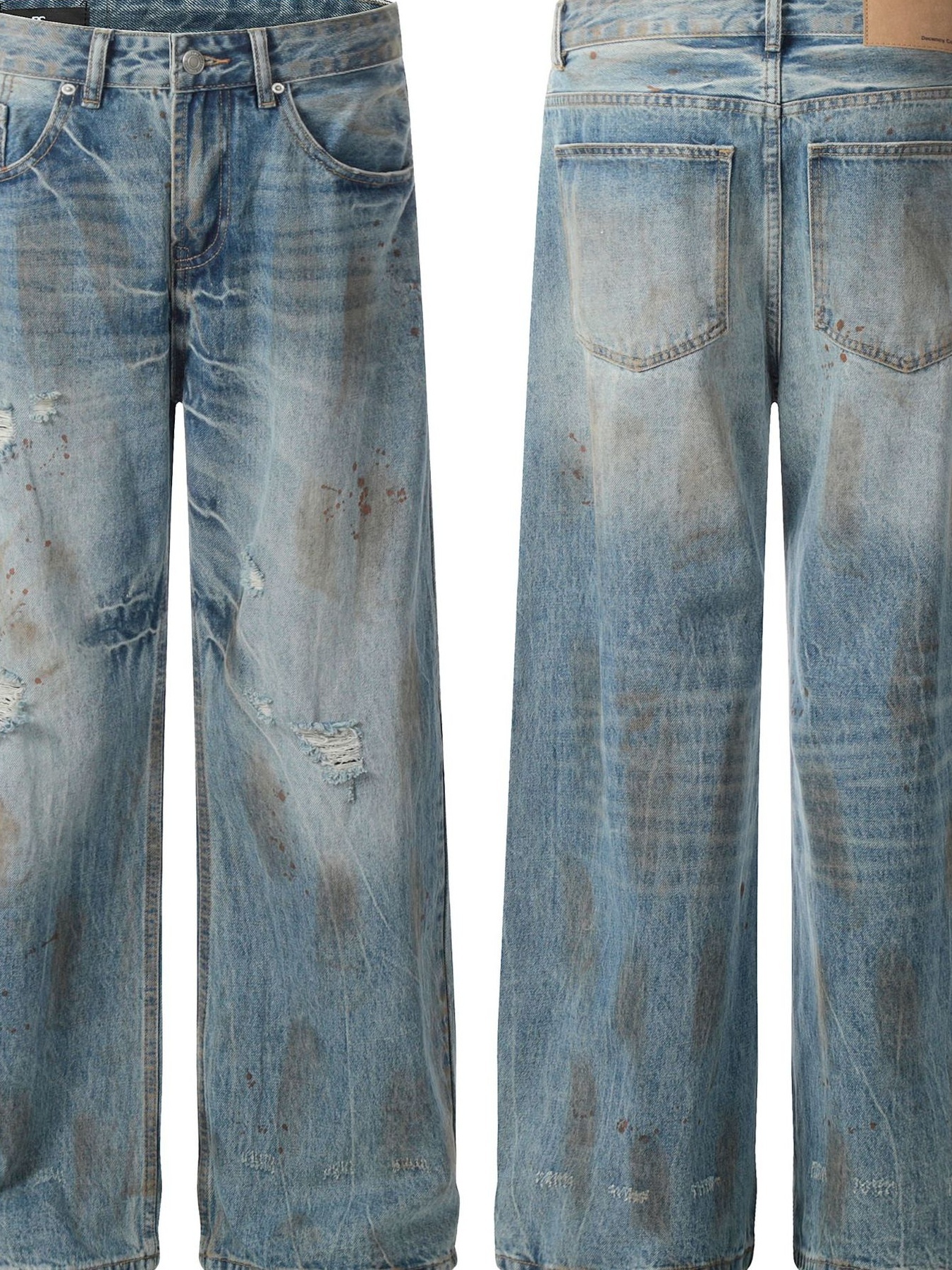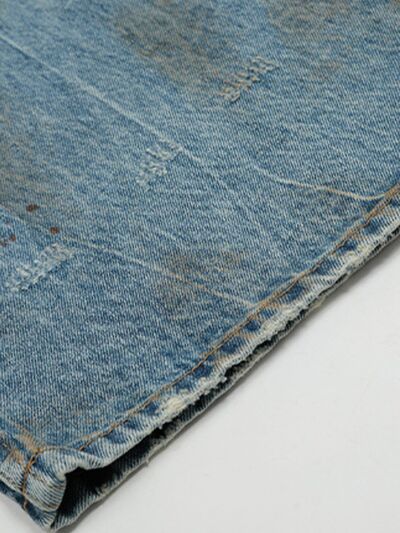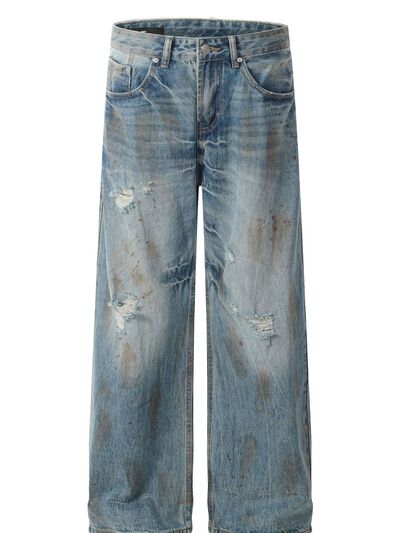 Men's Vintage Distressed Wide Leg Denim Jeans