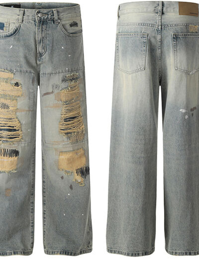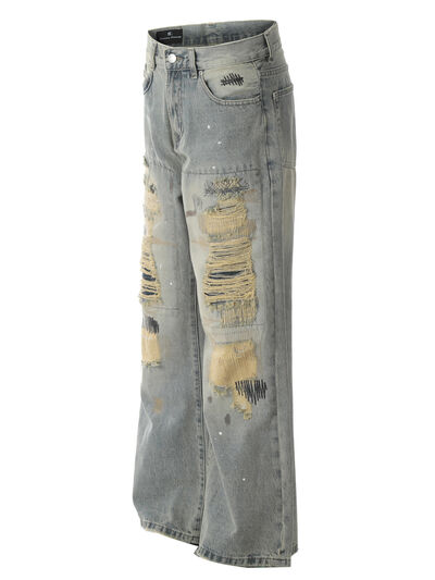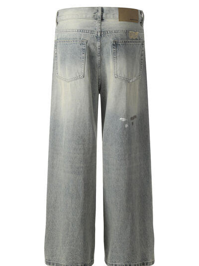 Men's Vintage Distressed Wide Leg Jeans