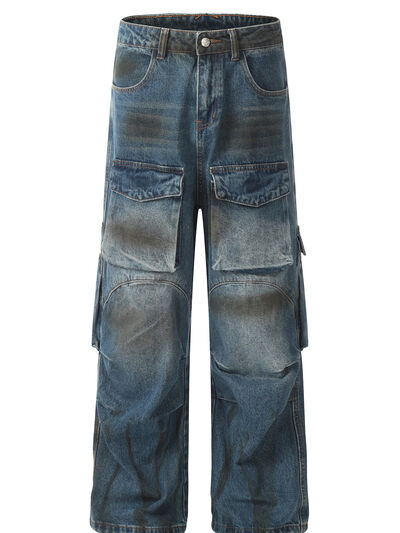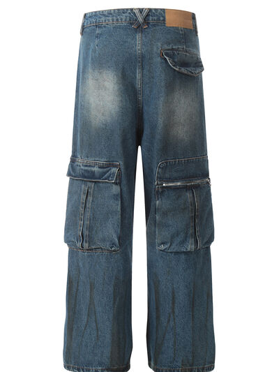 Men's Vintage Faded Multi-Pocket Cargo Jeans