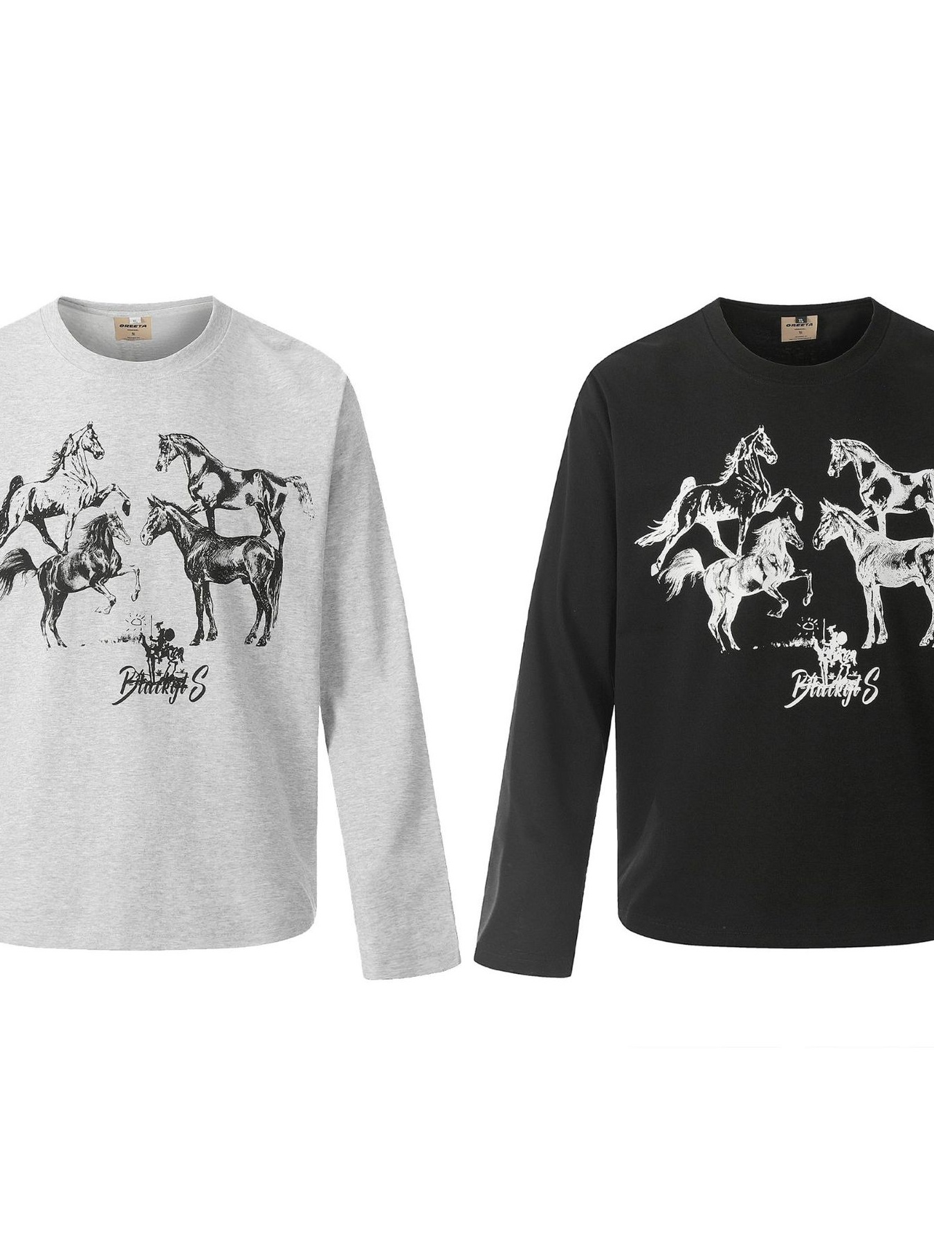 Men's Vintage Horse Graphic Long Sleeve T-Shirt