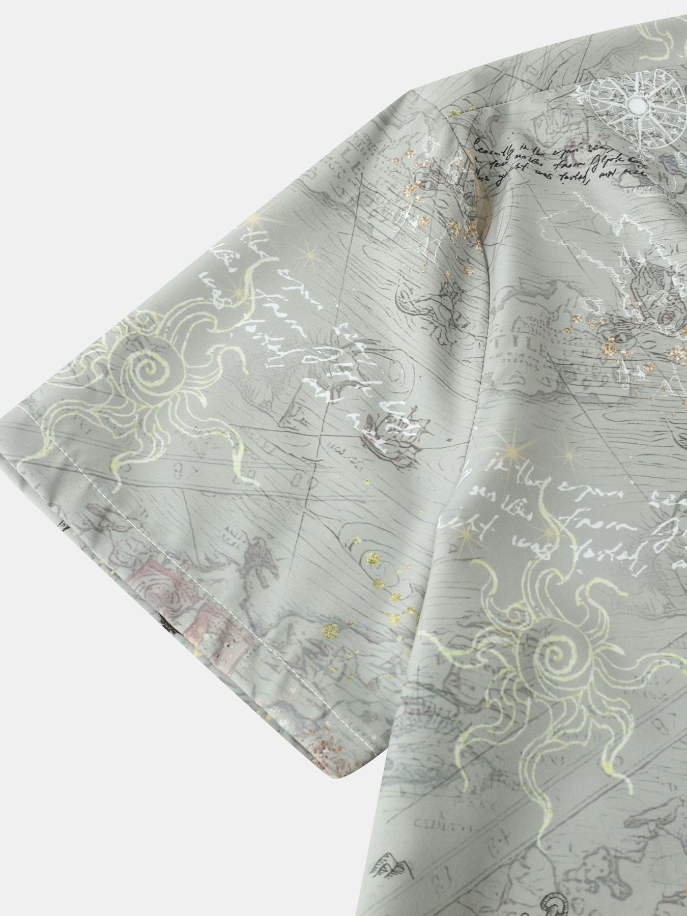 Men's Vintage Map Print Short Sleeve Button Down Shirt