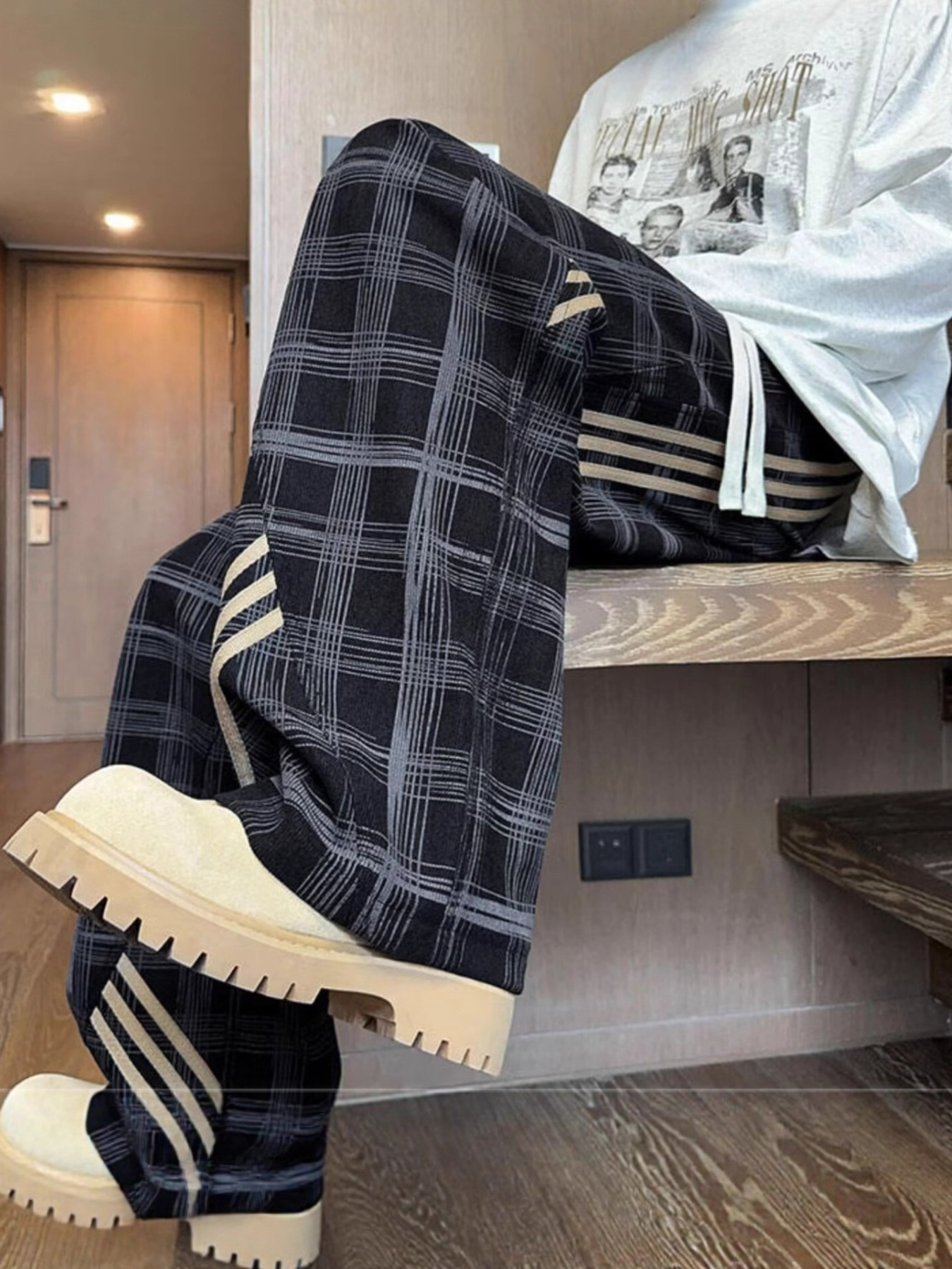 Men's Vintage Plaid Wide Leg Pants