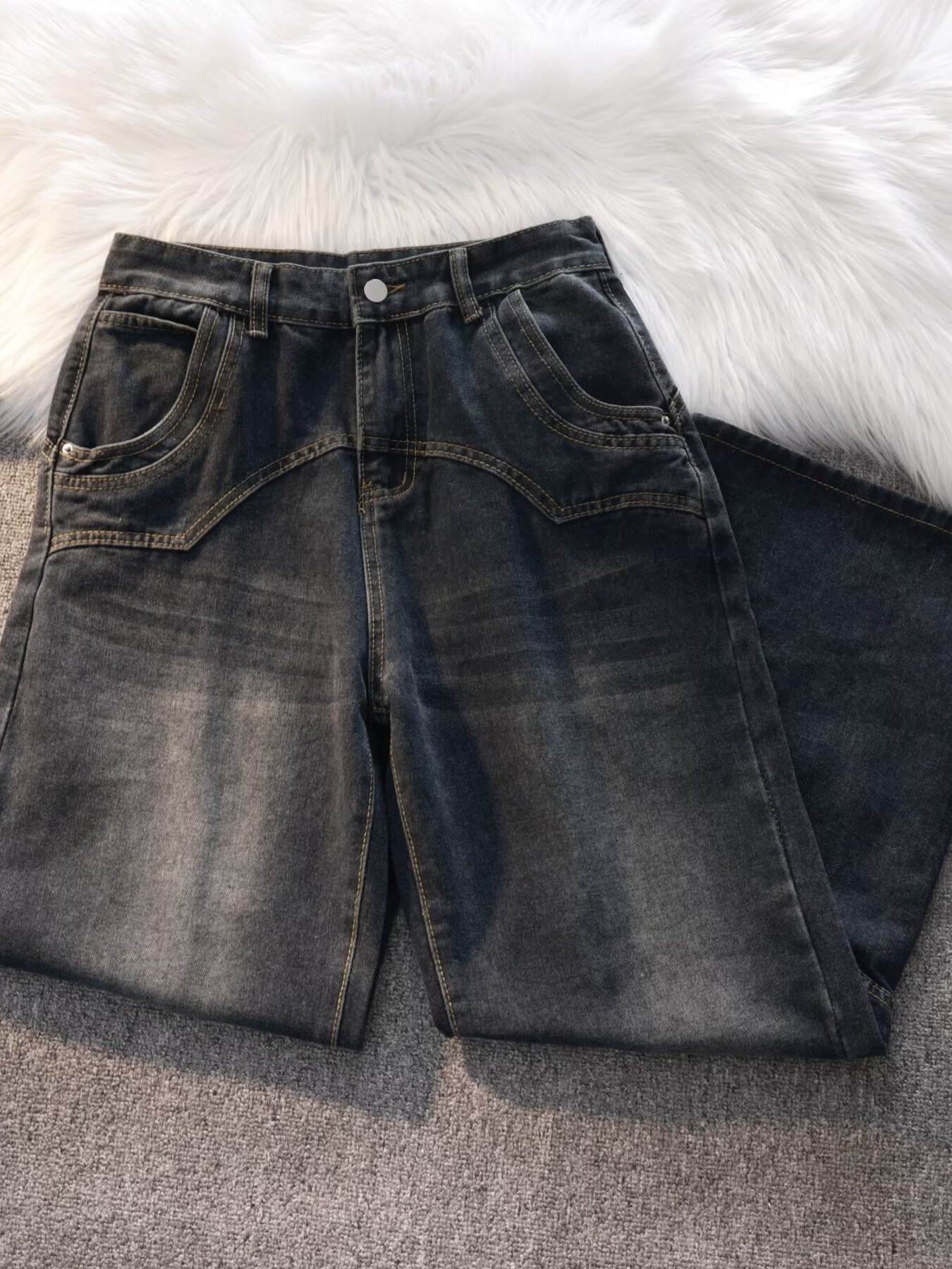 Men's Vintage Wash Wide Leg Jeans