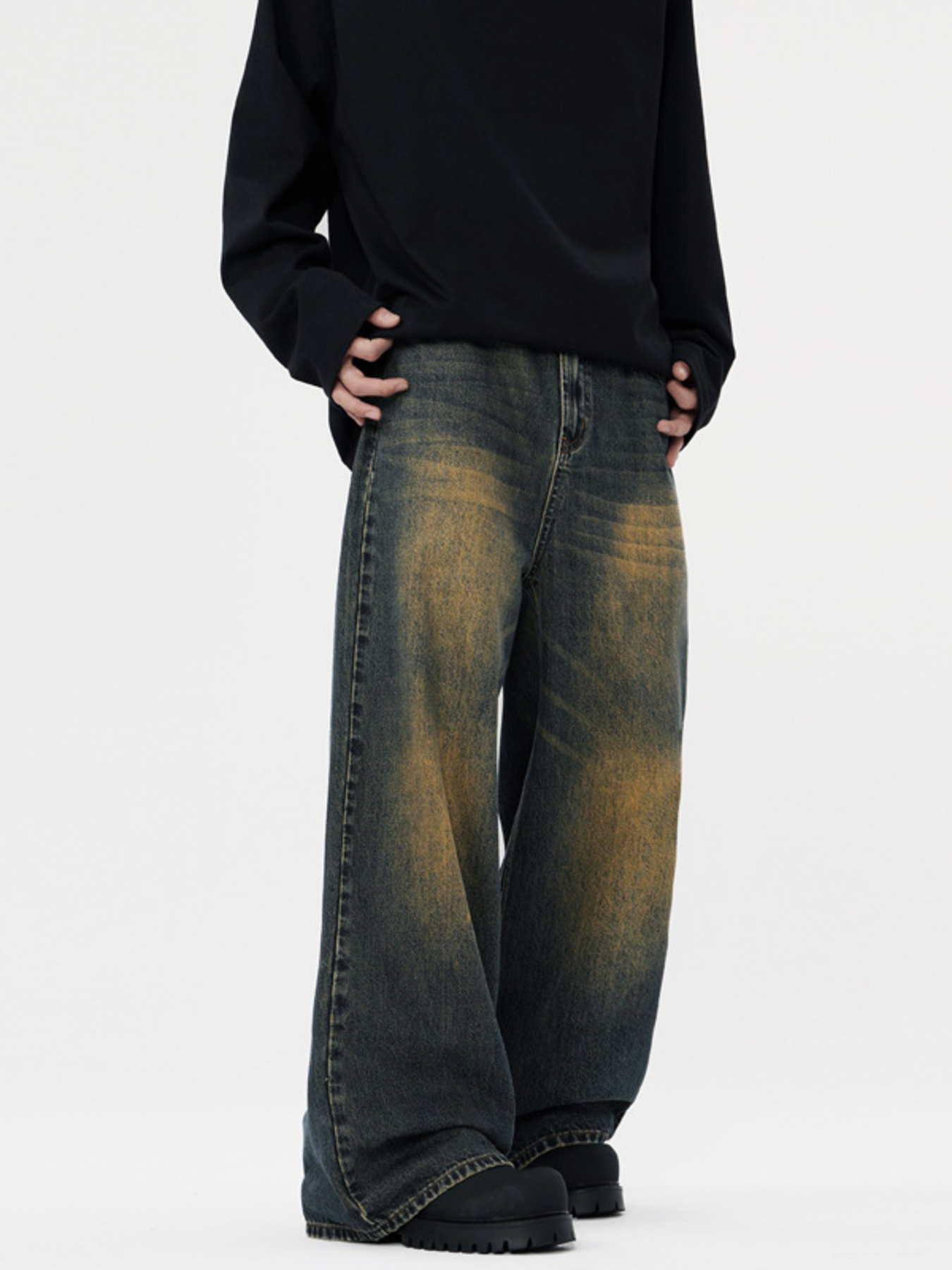 Men's Vintage Wash Wide Leg Jeans