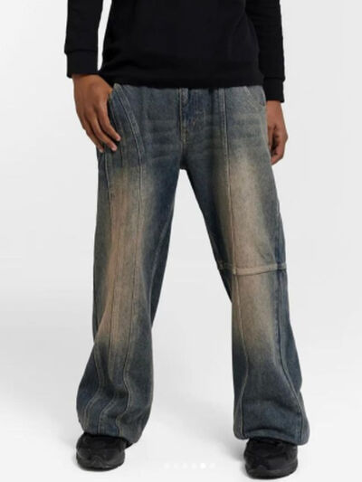 Men's Vintage Wash Wide Leg Relaxed Fit Jeans