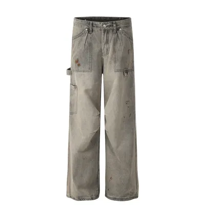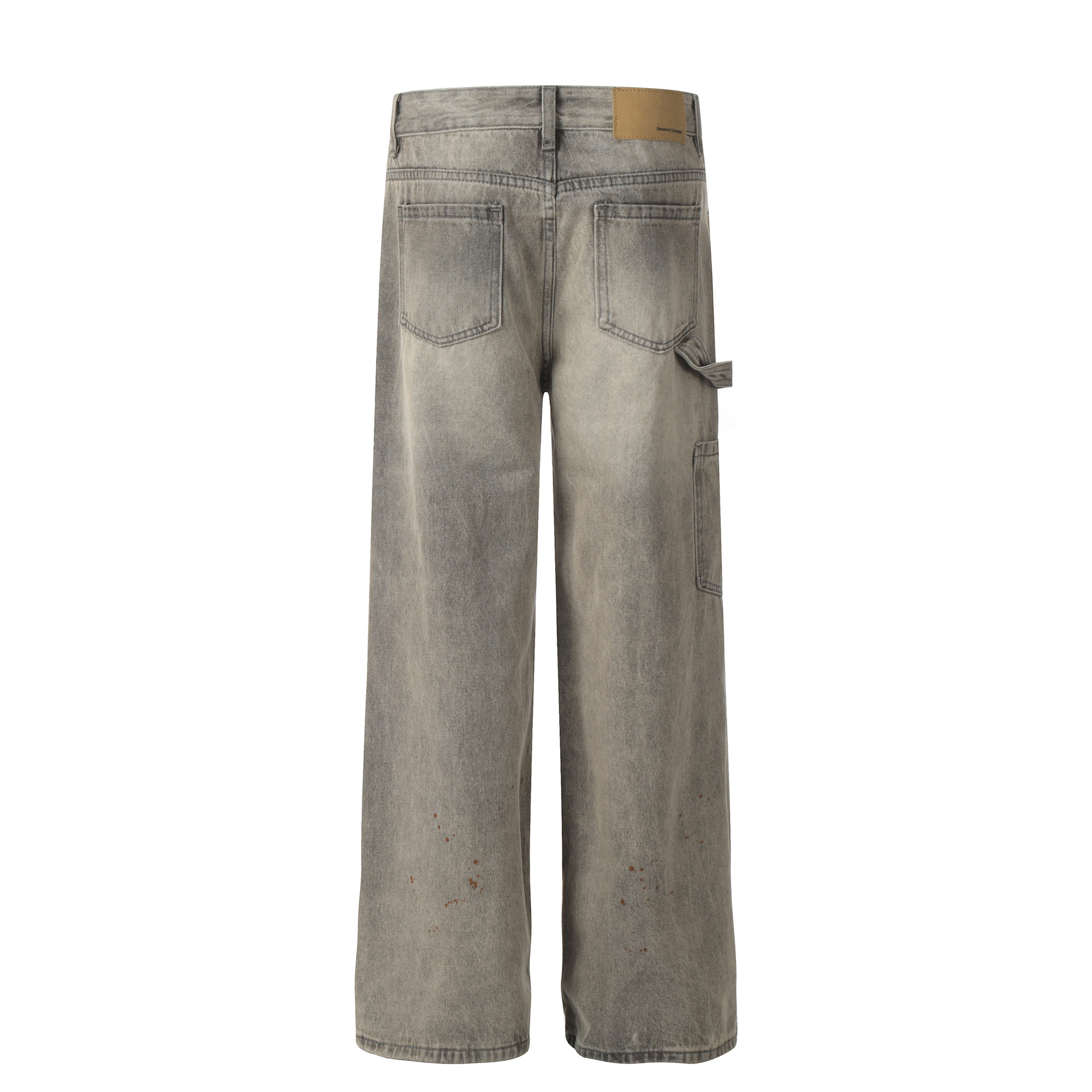 Men's Vintage Washed Cargo Pocket Wide-Leg Jeans