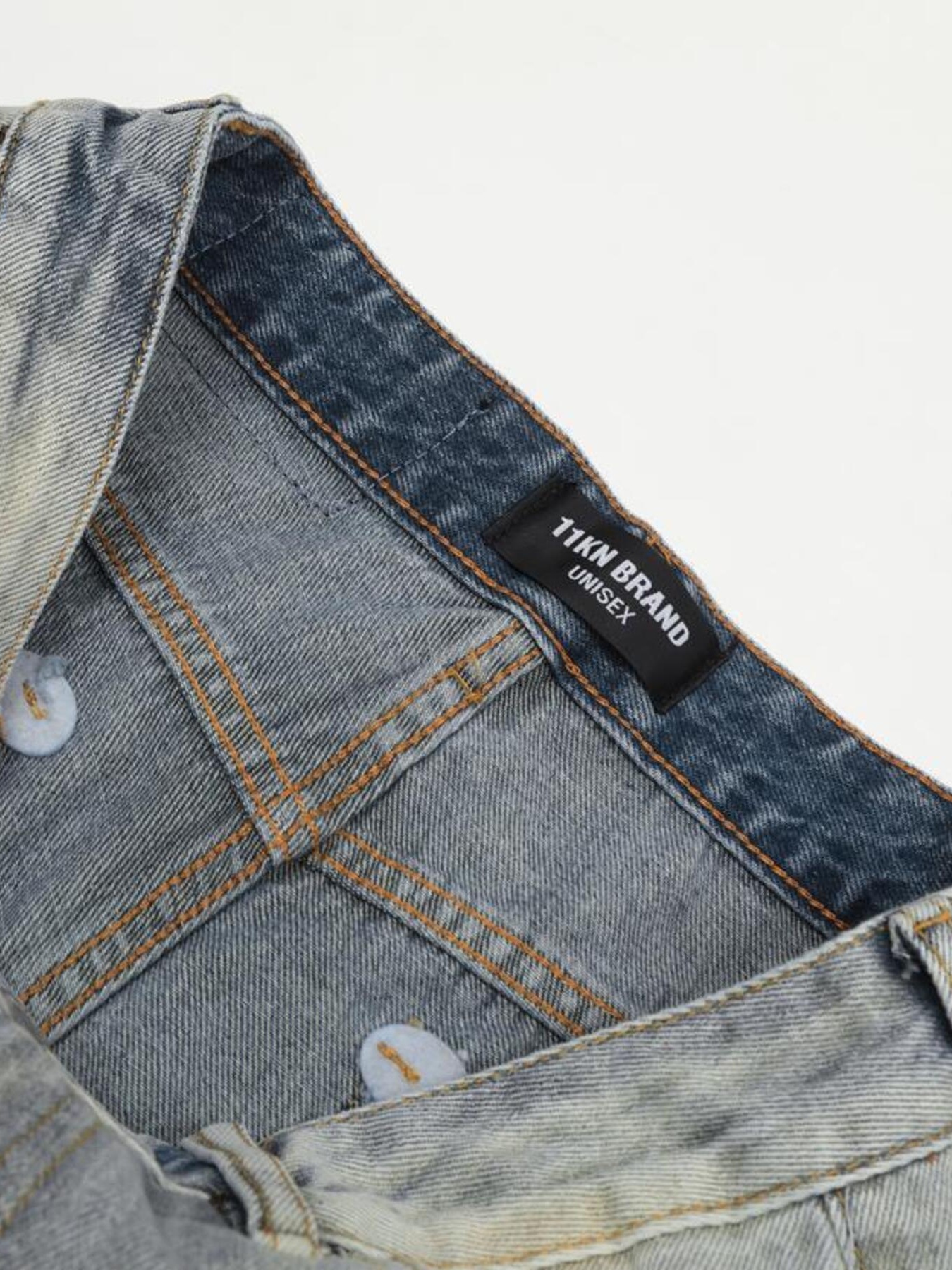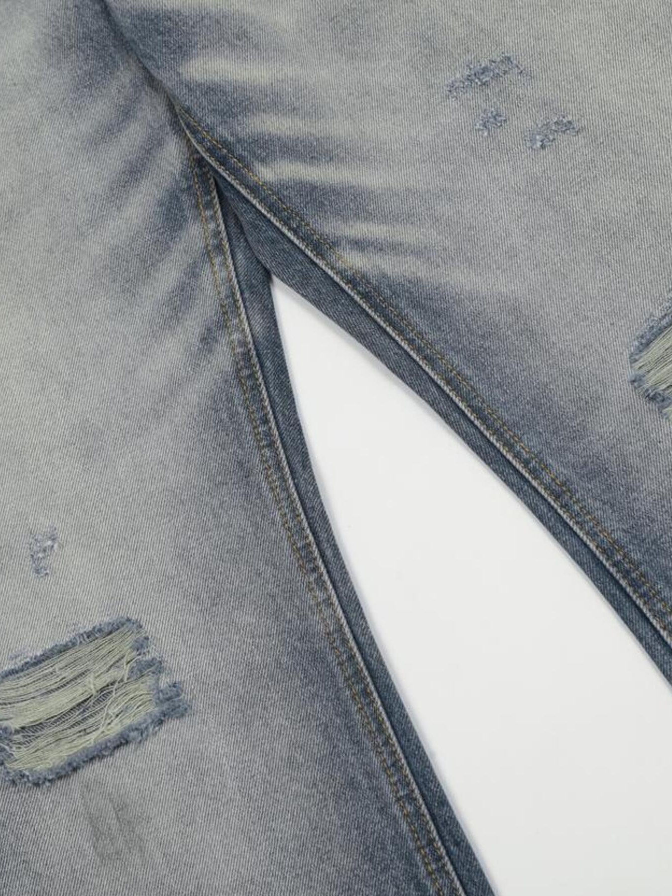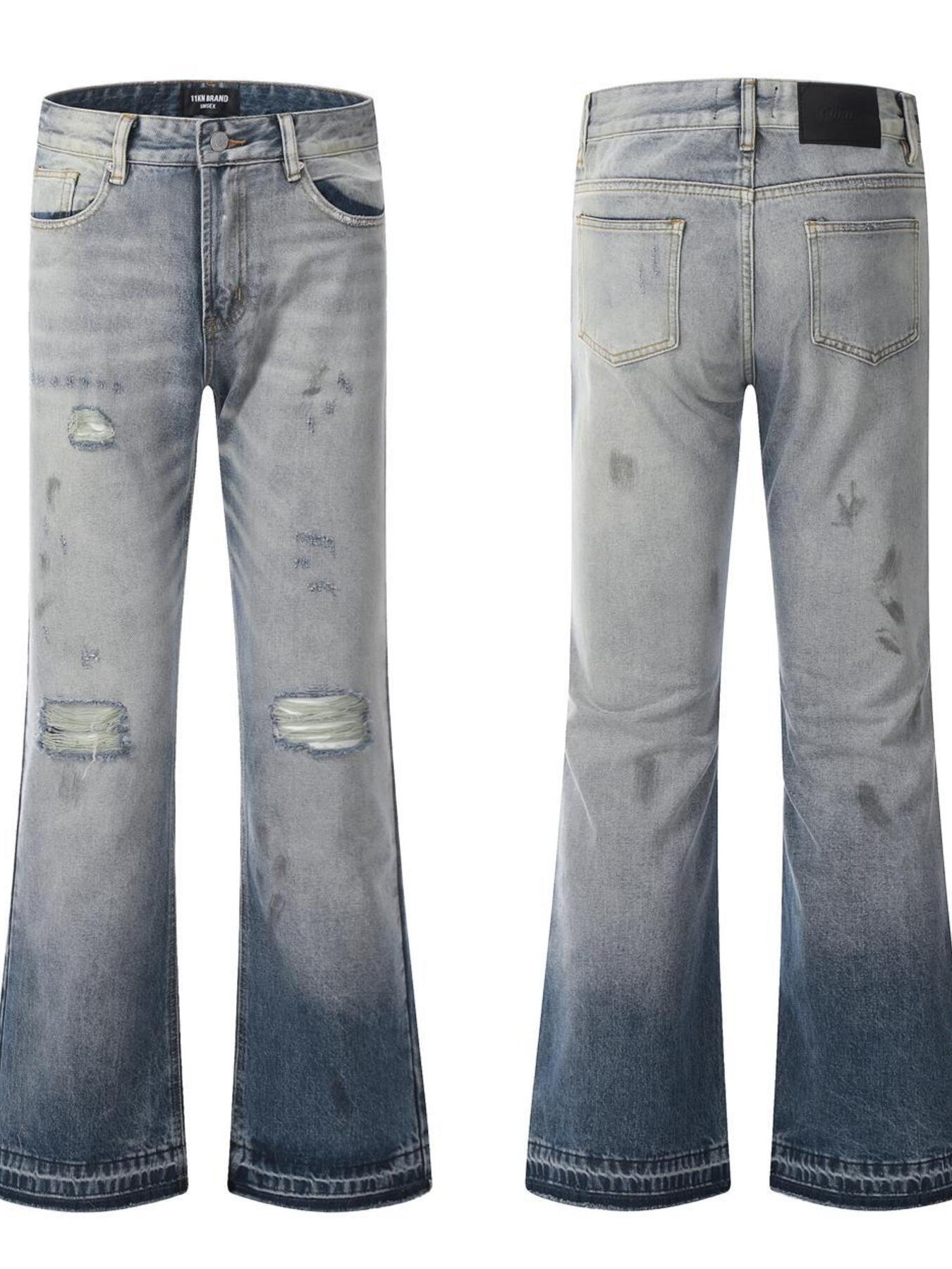 Men's Vintage Washed Gradient Distressed Flare Jeans