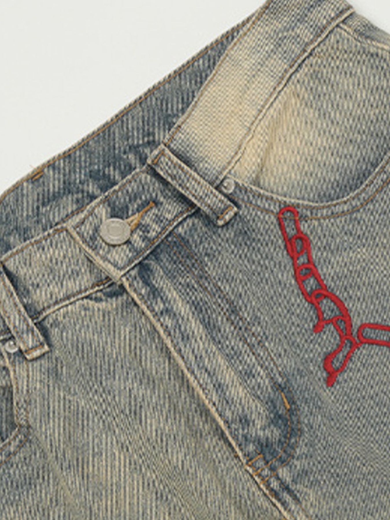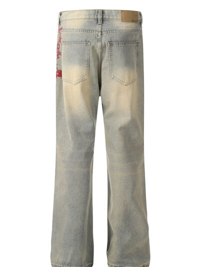 Men's Vintage Washed Jeans with Embroidery