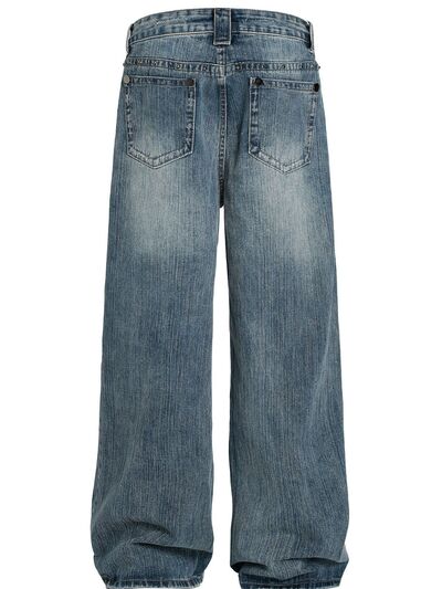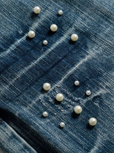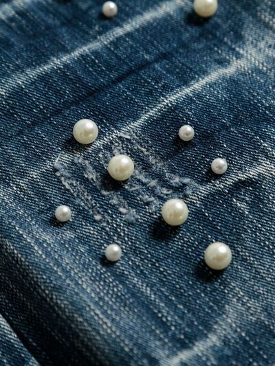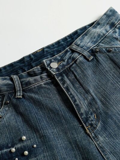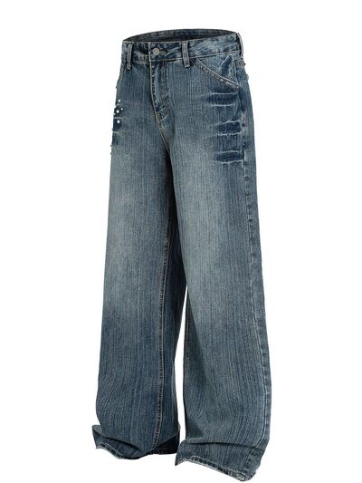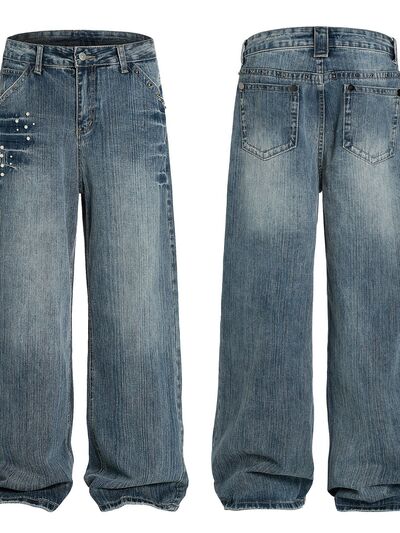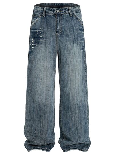 Men's Vintage Wide Leg Pearl Detail Jeans