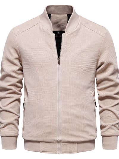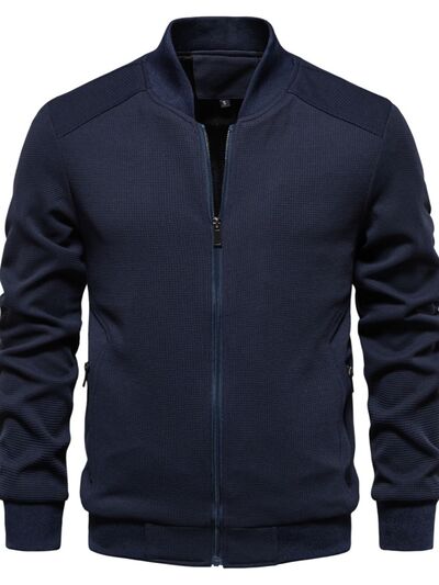 Men's Waffle Knit Baseball Collar Zip Up Jacket