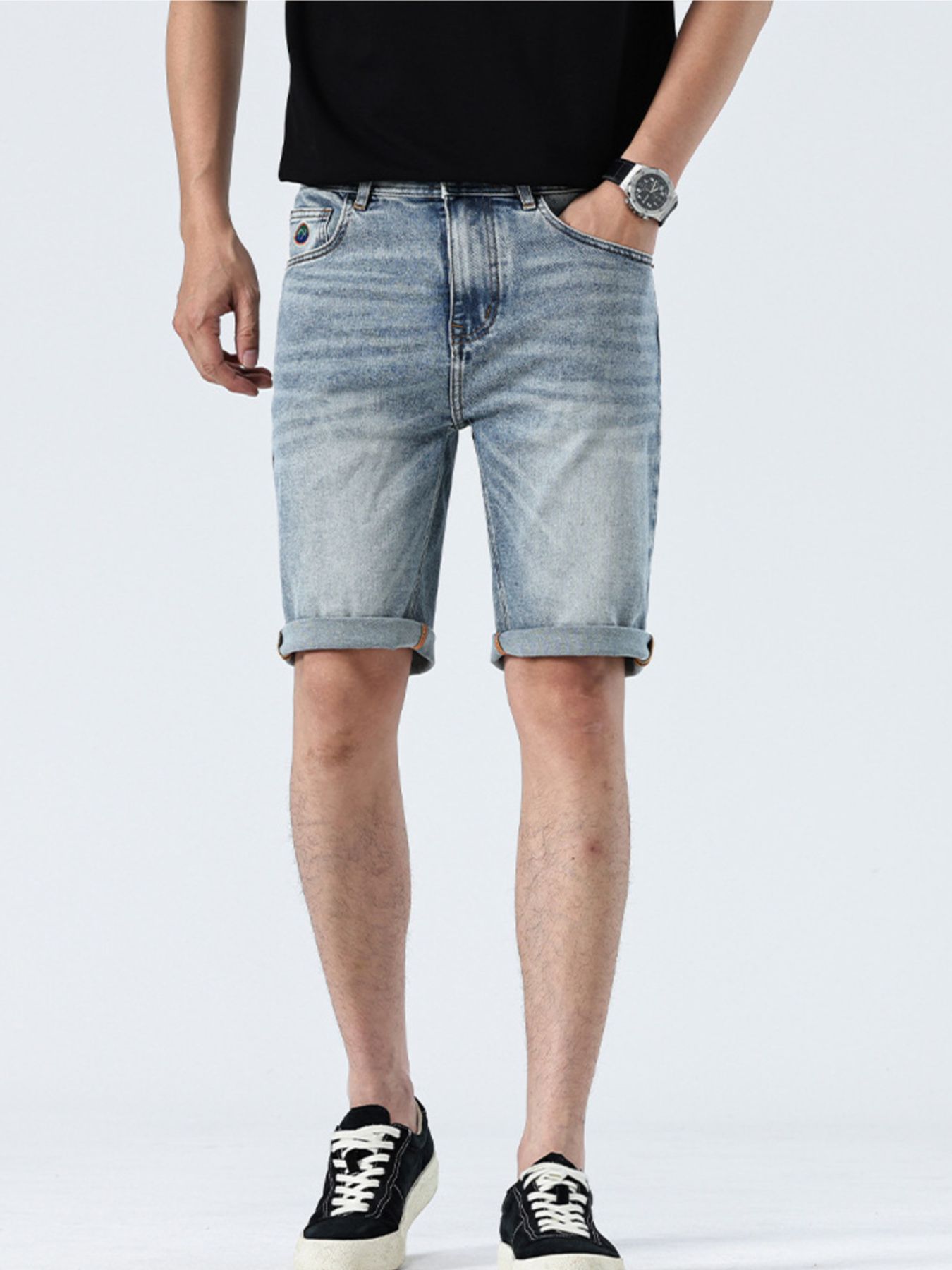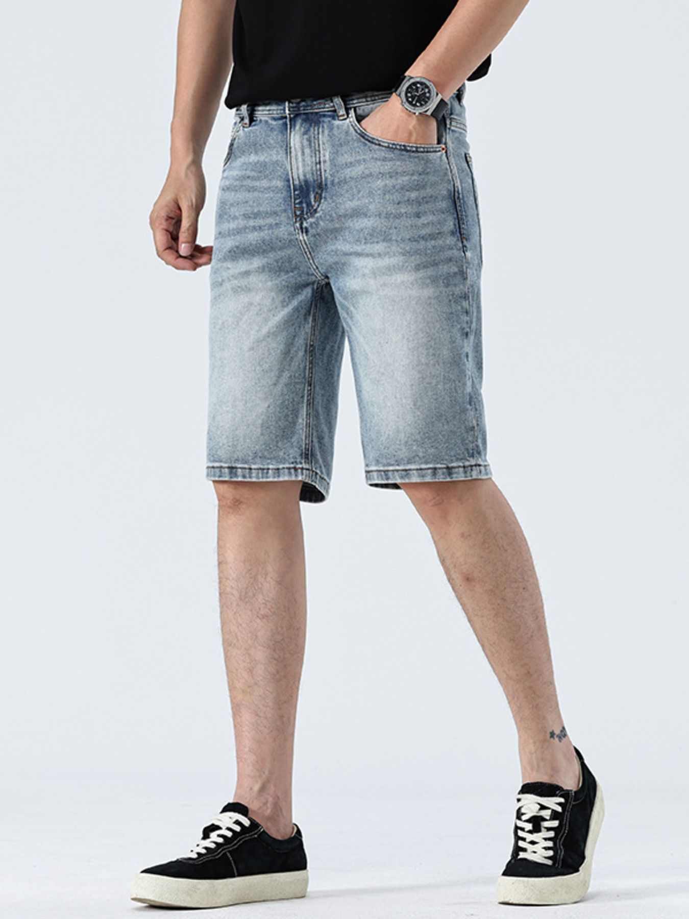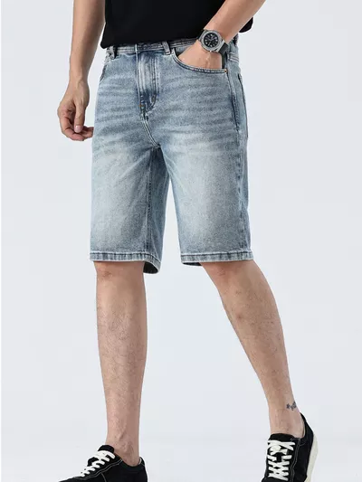 Men's Wash Denim Shorts with Pockets