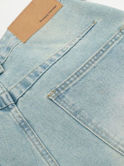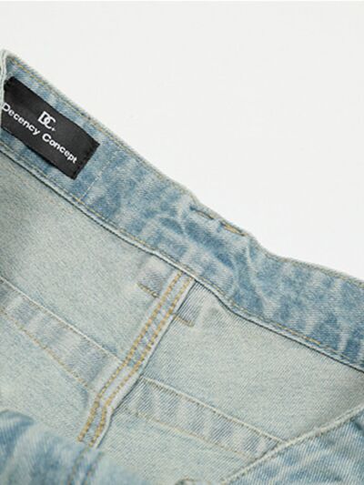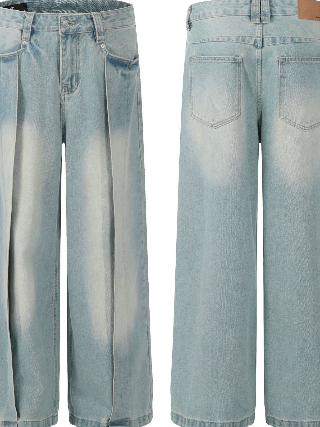 Men's Wash Pleated Wide Leg Jeans
