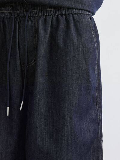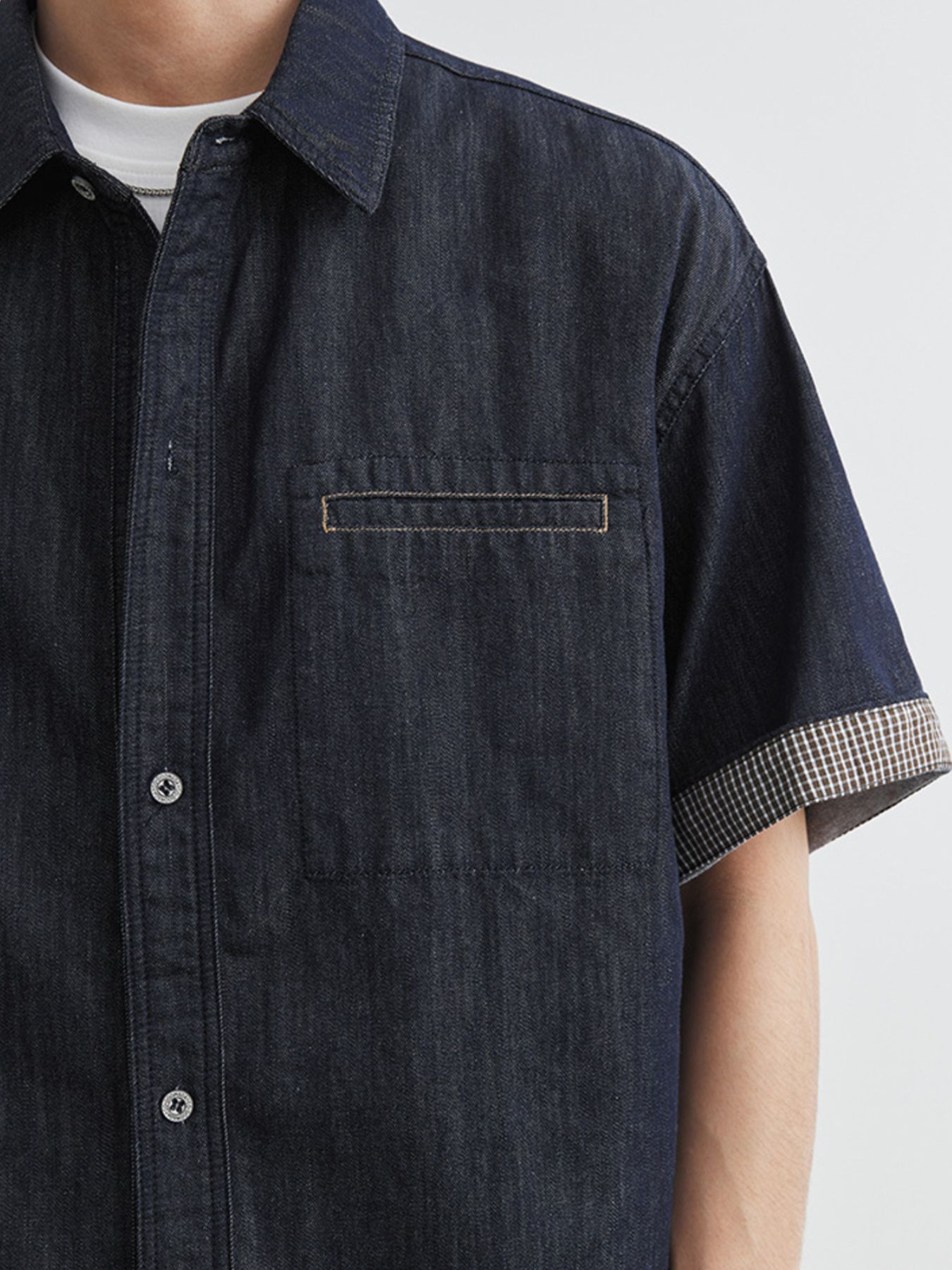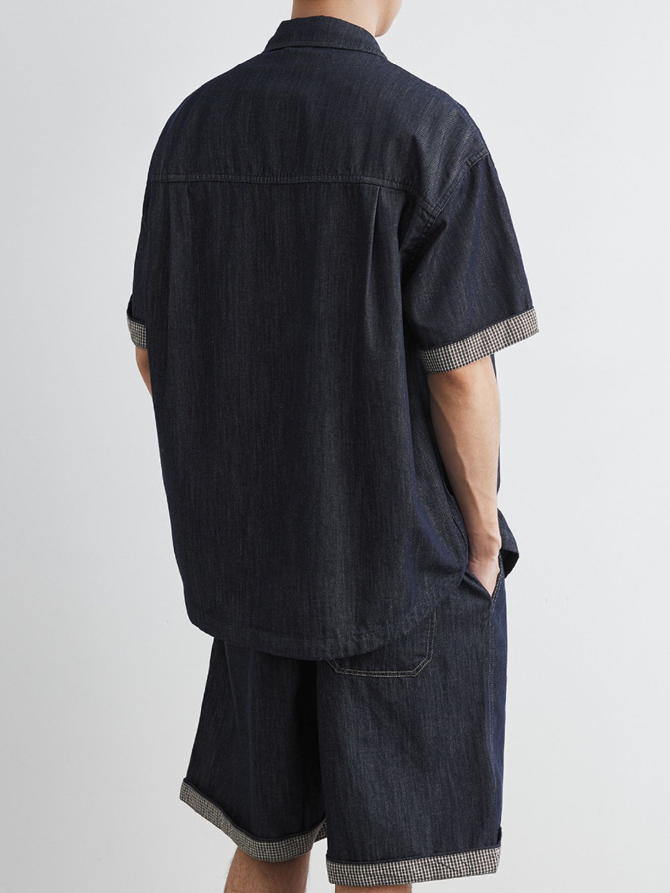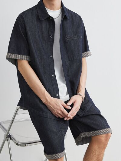 Men's Wash Short Sleeve Top and Shorts Denim Set