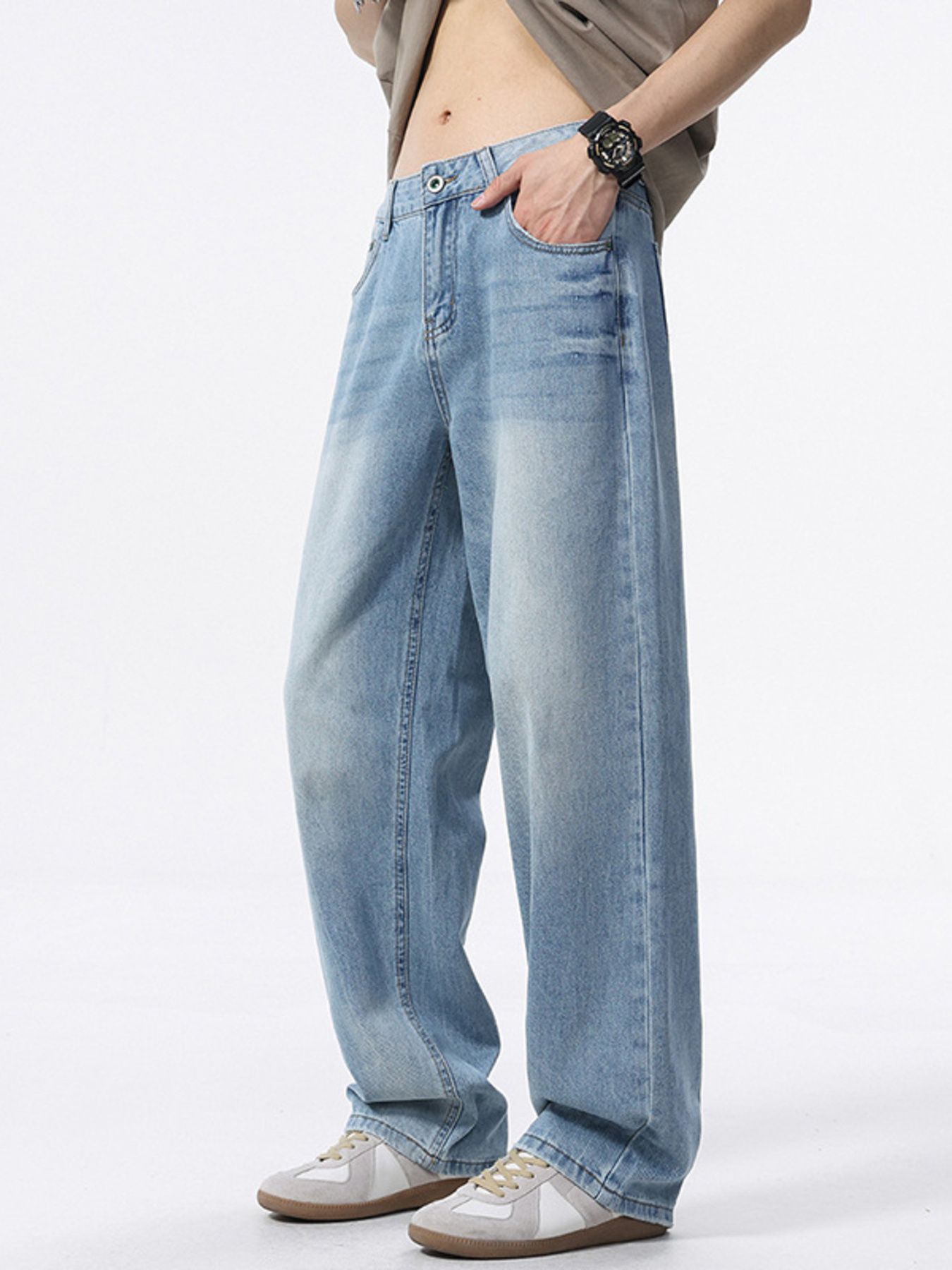 Men's Wash Wide Leg Jeans