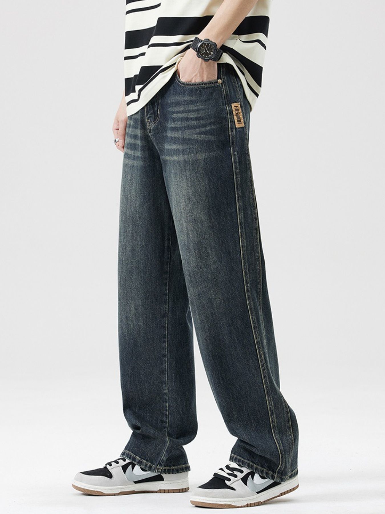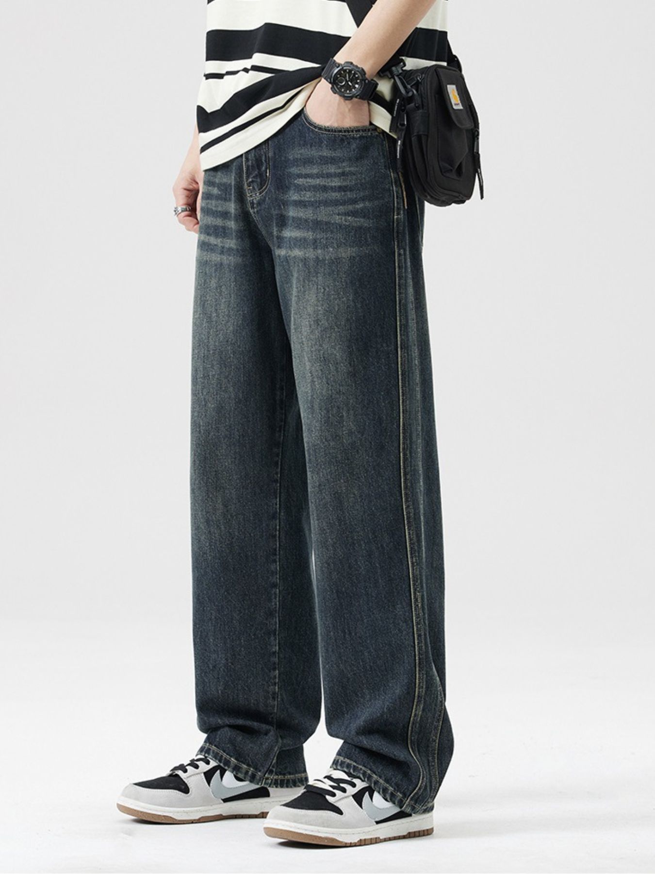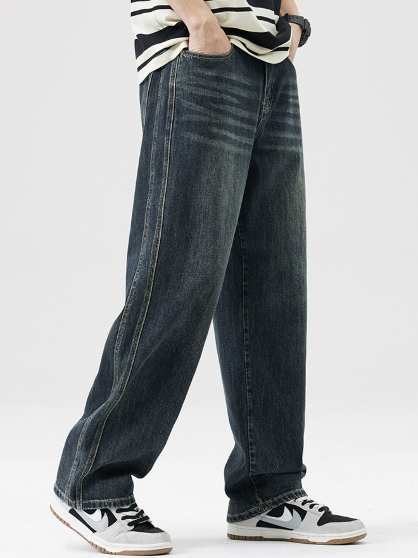 Men's Wash Wide Leg Jeans