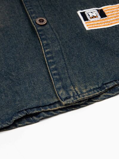 Features:Buttoned,Chenille Patch,Washed,Embroidered